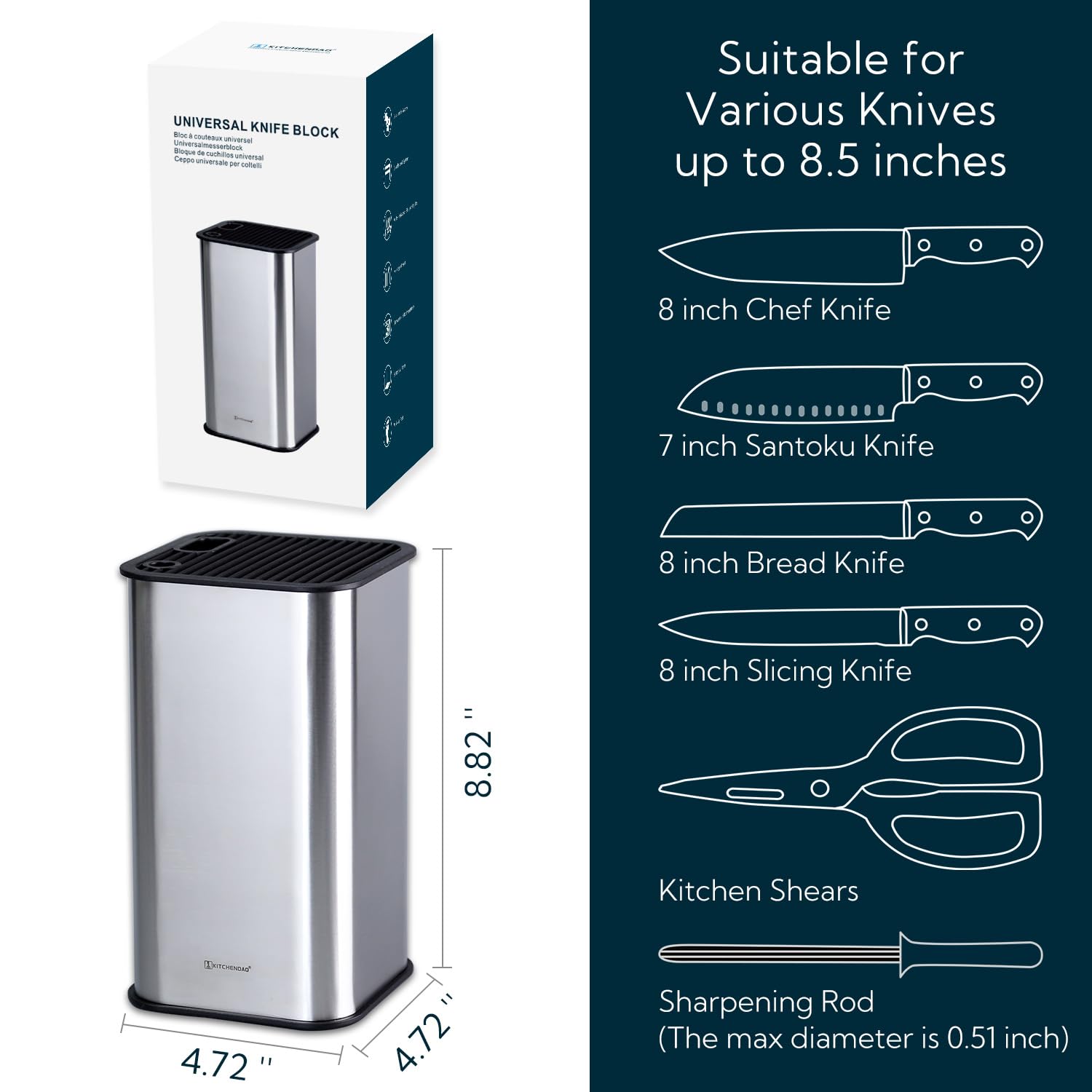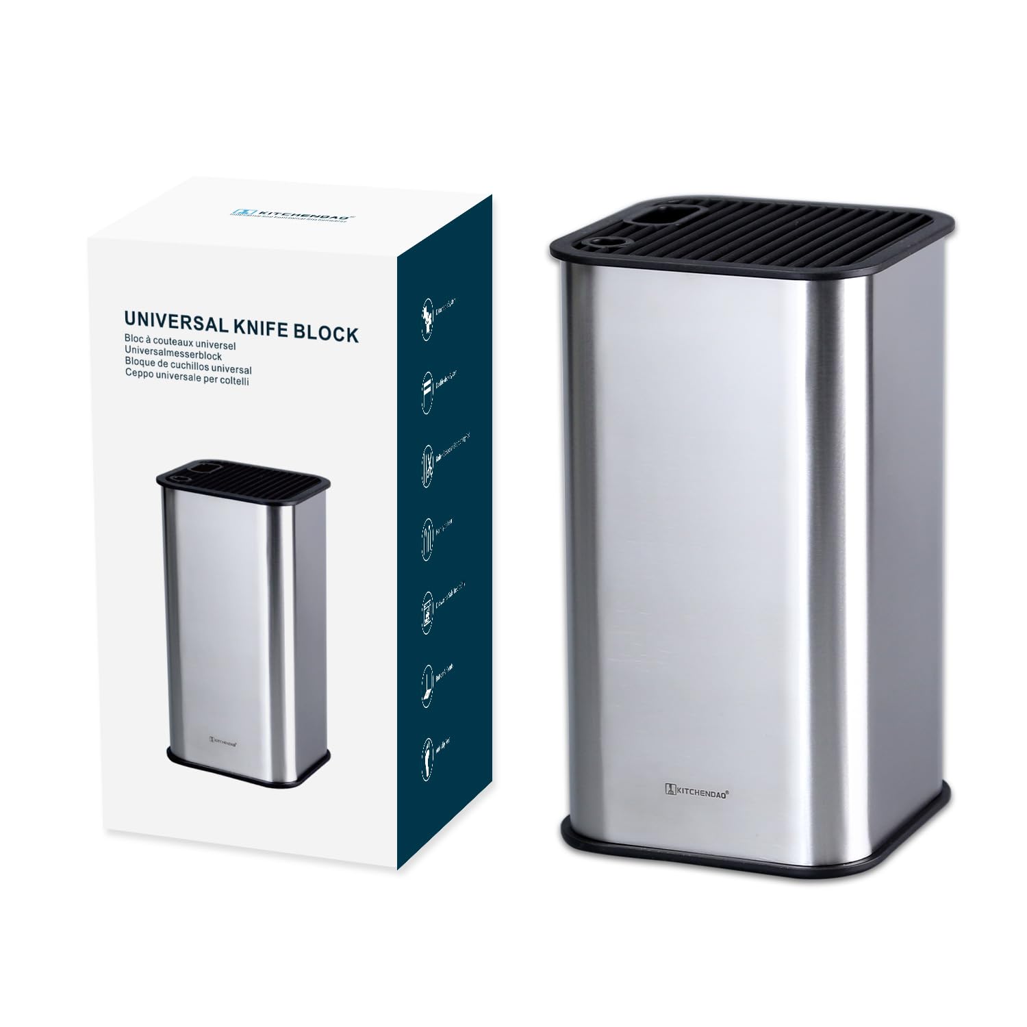 KITCHENDAO Edelstahl-Messerblock mit Schlitzen für Schere und Schärfstab - abnehmbar für einfache Reinigung und einzigartiges Schlitzdesign zum Schutz der Klinge