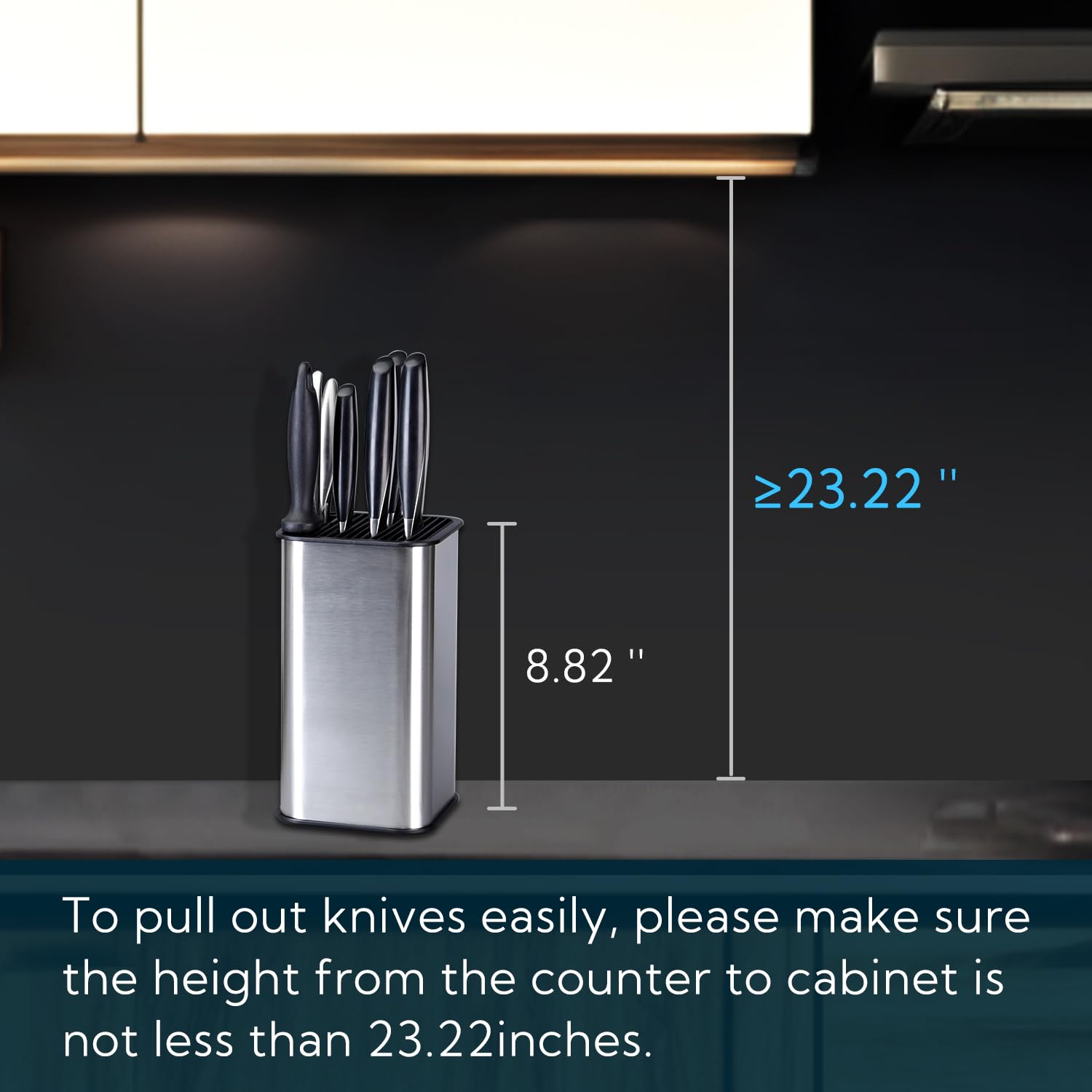 - ✔ Geeignet für alle Arten von Messern. Fühlen Sie sich mit zu vielen verschiedenen Messern frustriert, die nicht in die traditionellen Messerblöcke passen? Dieser universelle Kinfe-Block kann jedes Messer bis 8,9 Zoll mit jeder Klingenform, Küchenschere und Schärfstange aufnehmen