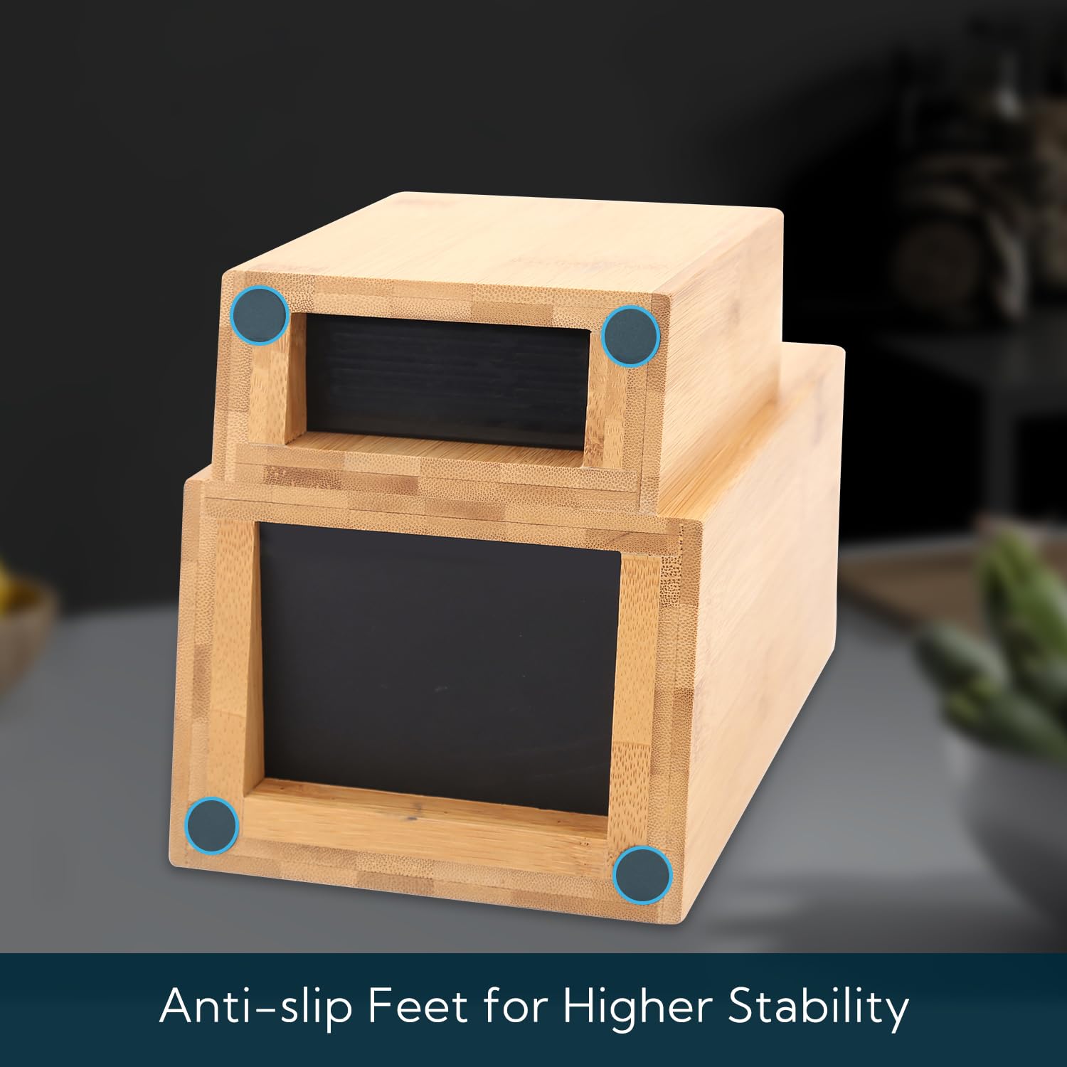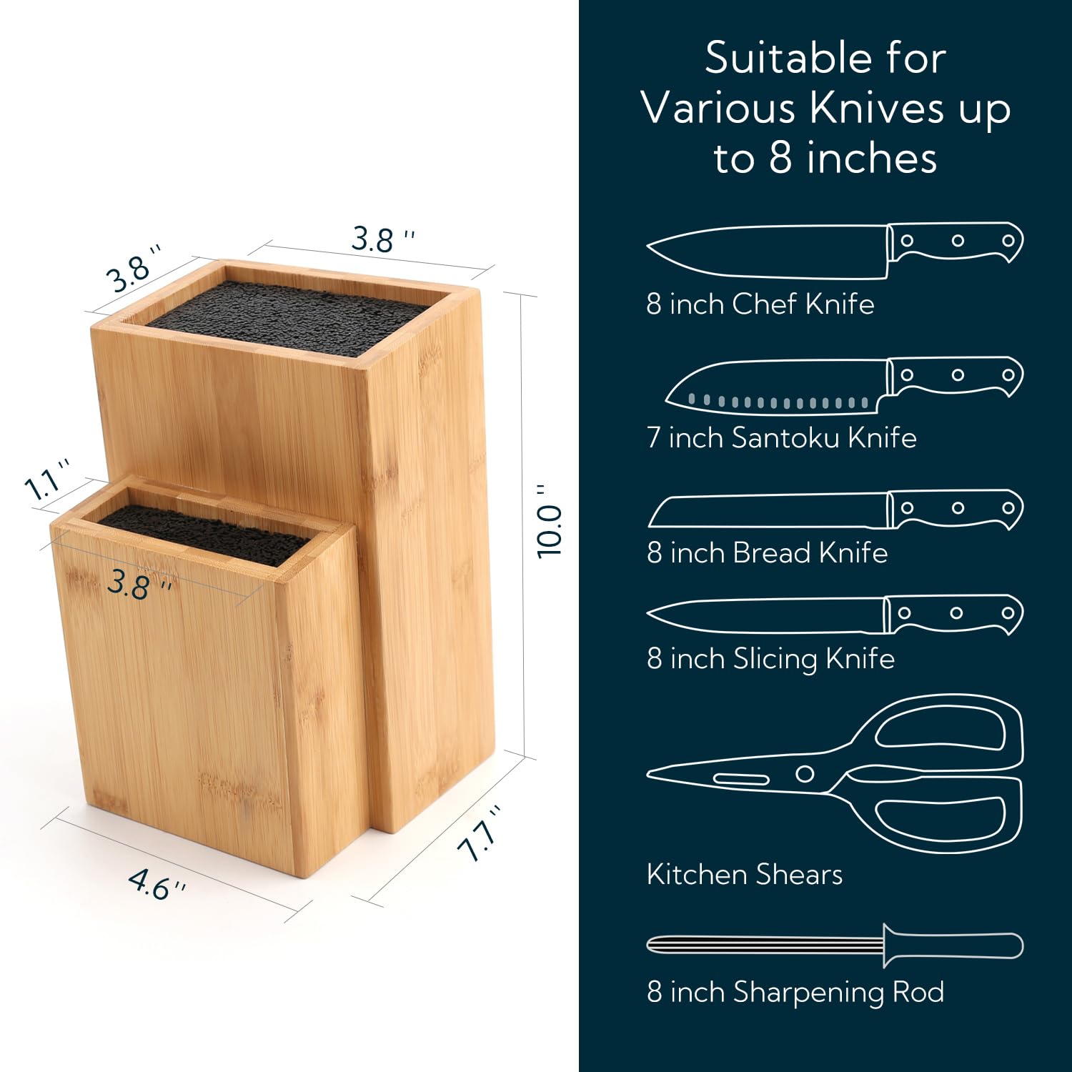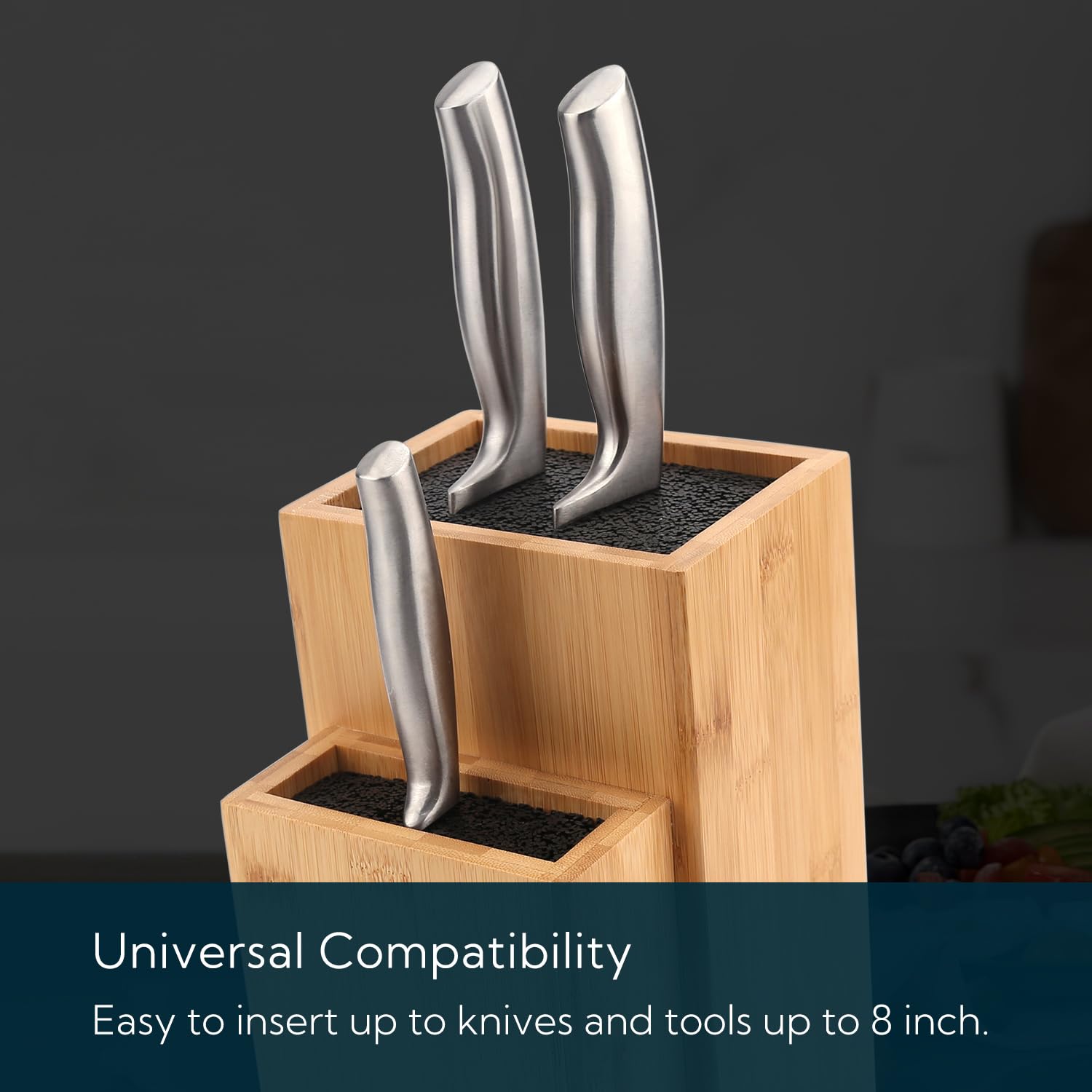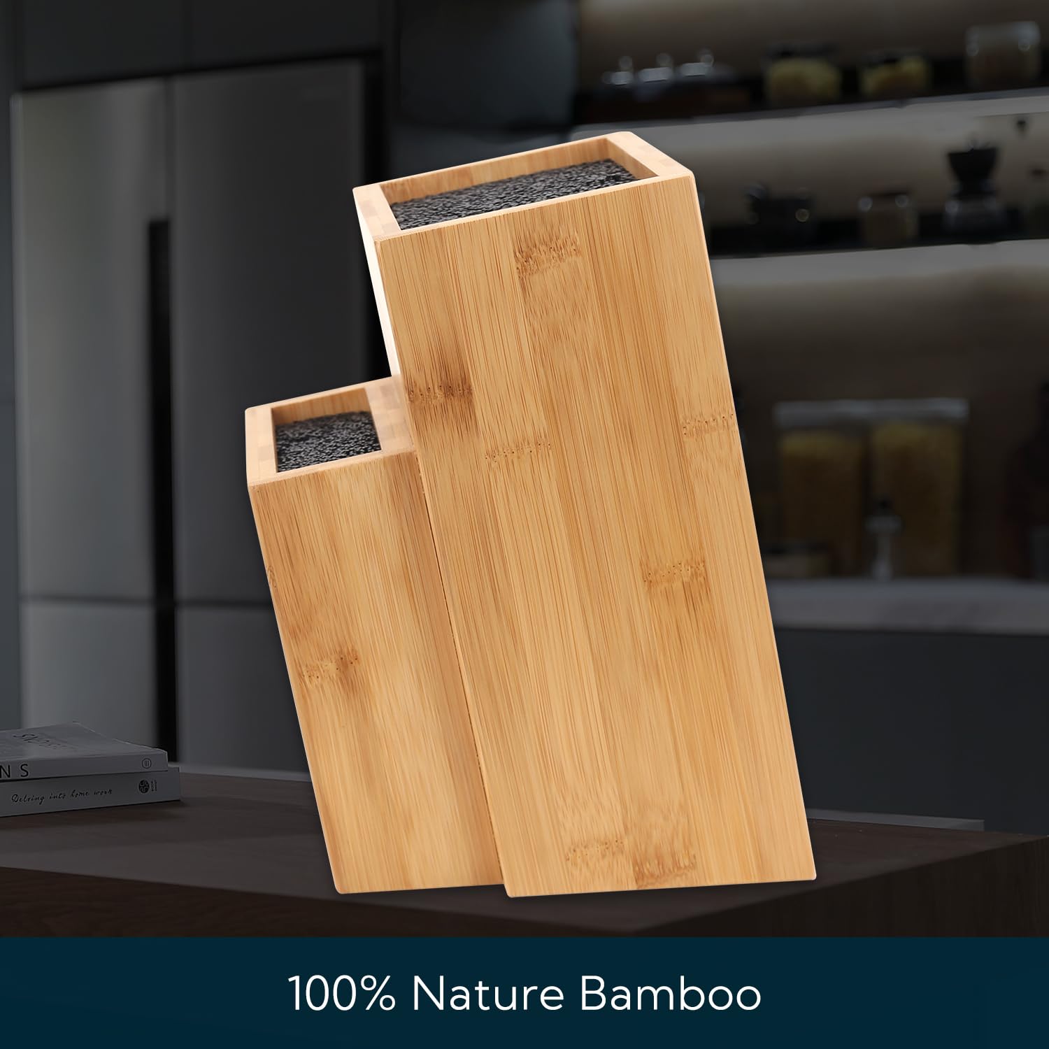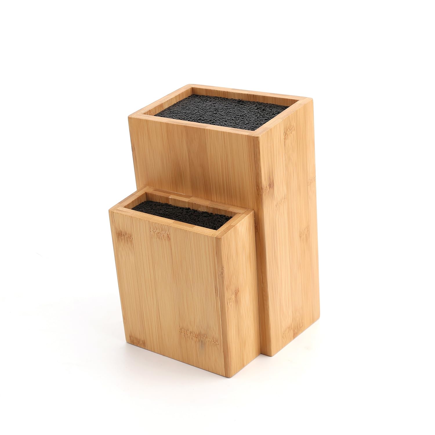 KITCHENDAO Bambus-Universalmesserblock, extra grosser zweistufiger Bambus-Messerständer ohne Schlitze, sichere Aufbewahrung für Messer und Küchenutensilien, abnehmbare Borsten für einfache Reinigung