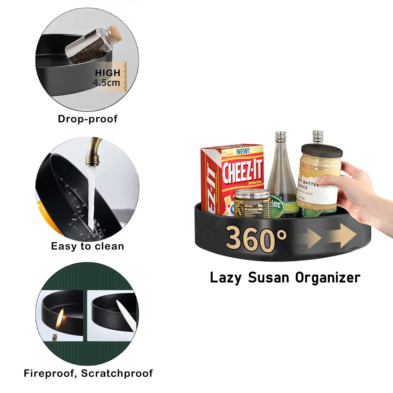 XNTONG - 360° Frei drehbares gewürzregal, Einfacher zugriff auf gegenstände im Inneren, Platz sparen, Halten sie Ihre artikel ordentlich und organisiert, Hergestellt aus hochwertigem edelstahl, Feuerfest, Wasserdicht und Kratzfest, Während des gebrauchs nicht leicht beschädigt werden kann, Der boden des tablett drehbar ist mit einer drehbaren rollenplatte ausgestattet, Um Ihre lagerung reibungsloser zu gestalten, Für Küche, Bad, Arbeitsplatte, Abstellraum, Kühlschränken, Büro usw, 25,5 cm Drehbares Tablett aus Stahl.