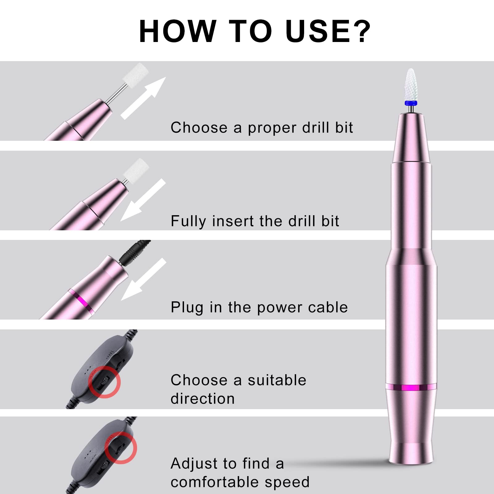 Xoali Elektrischer Nagelfraeser 25000 U/min – 12 in 1 Nagelfeile Set USB Rosa