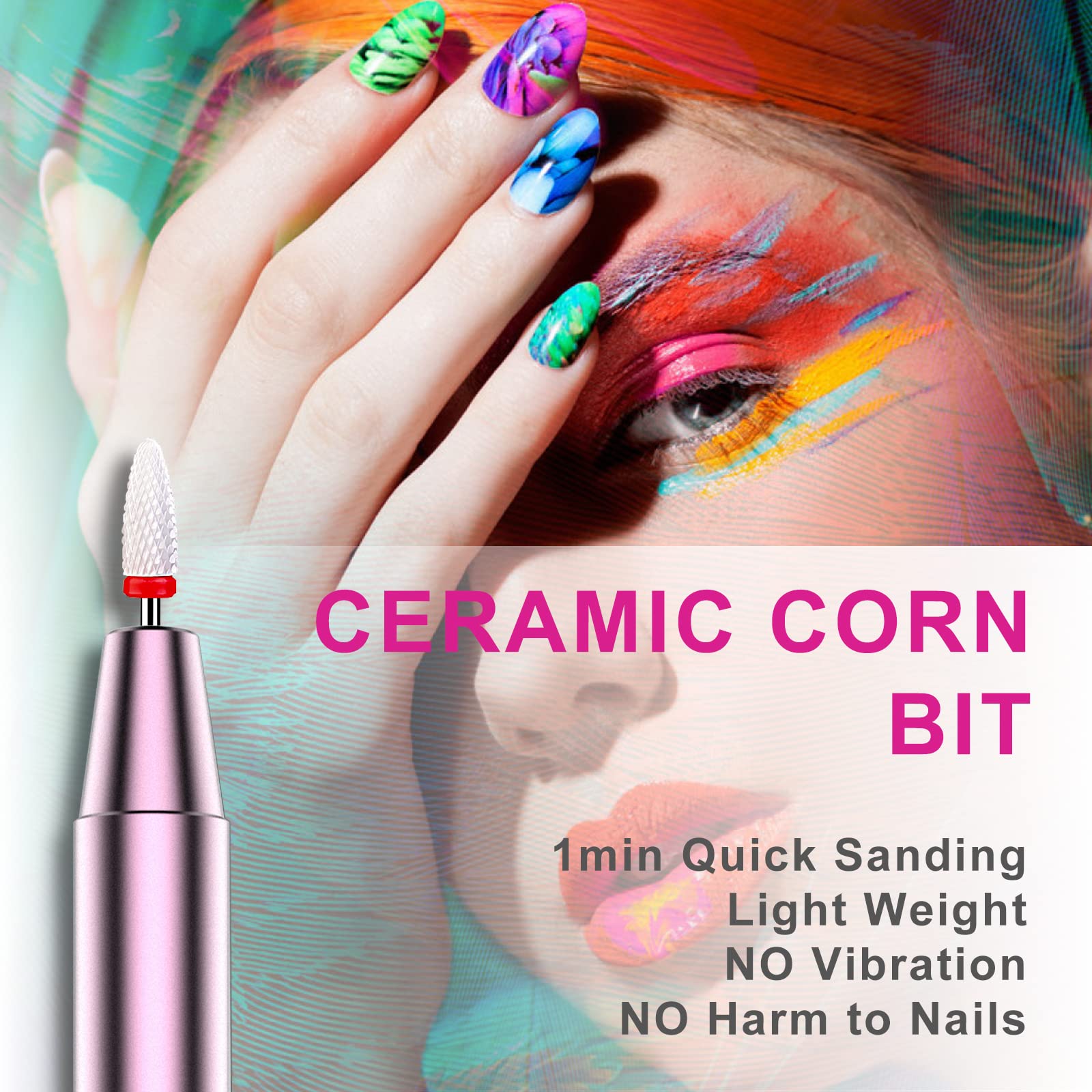 • Keramik Mais Bit mit geringer Waermeentwicklung Der hochwertige Keramik Bohrer zeichnet sich durch geringes Gewicht, niedrige Vibration und reduzierte Hitzeentwicklung aus. Dadurch eignet er sich besonders fuer sicheres und komfortables Arbeiten bei Gel und Acrylnagel Anwendungen.