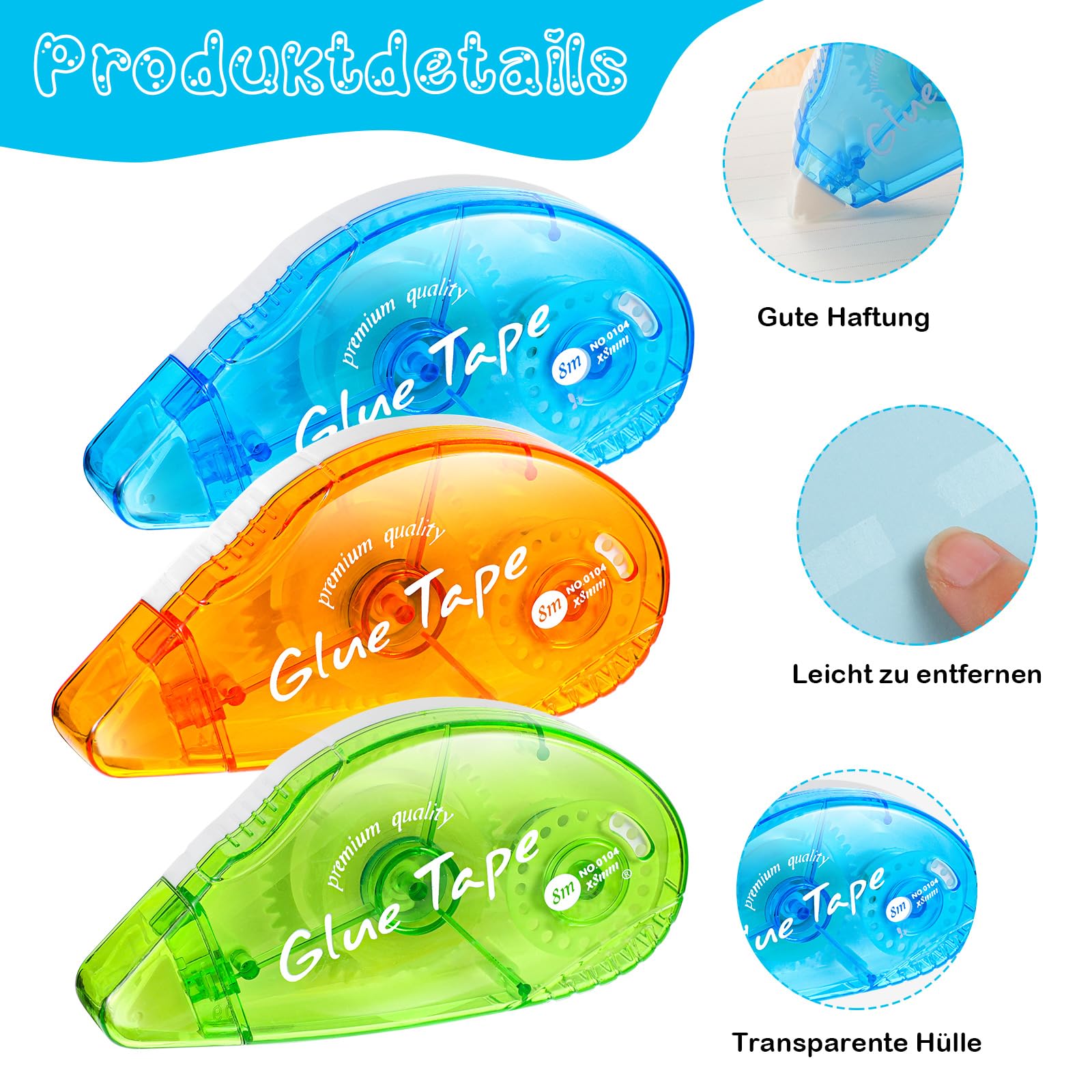3. Doppelseitiges Klebeband ist klein und leicht und kann in Federmäppchen und Rucksäcken mitgeführt werden.