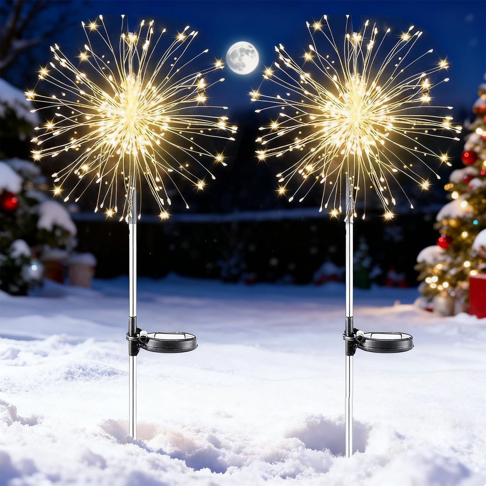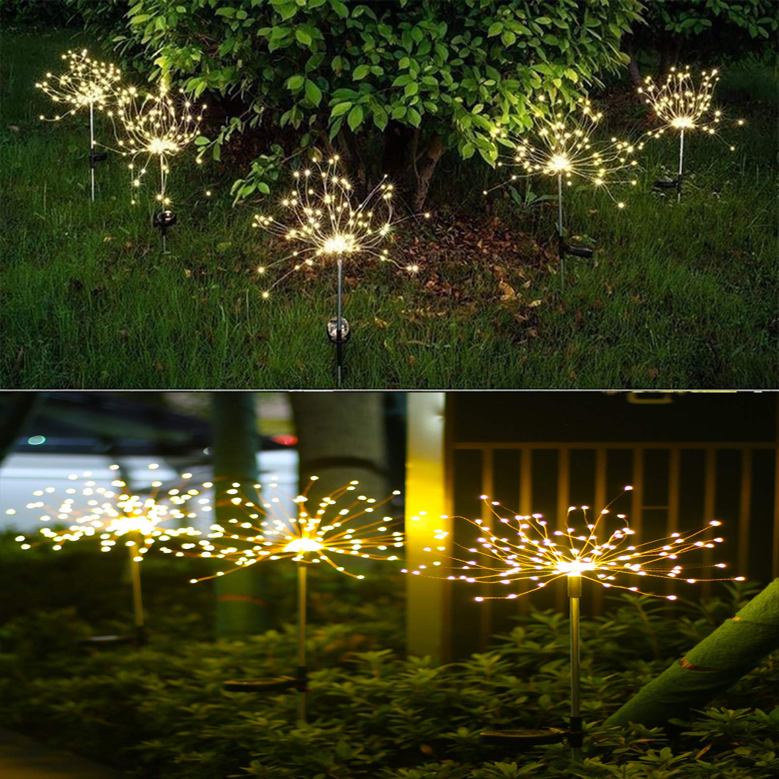 XVZ Solarlampen für Aussen Garten, 2 Stück 150LED Solar Feuerwerk Licht, Solarleuchten Gartendeko für Aussen Wasserdicht 2 Modi für Rasen, Weg, Terrassen, Balkon, Weihnachten Deko - Warmweiss