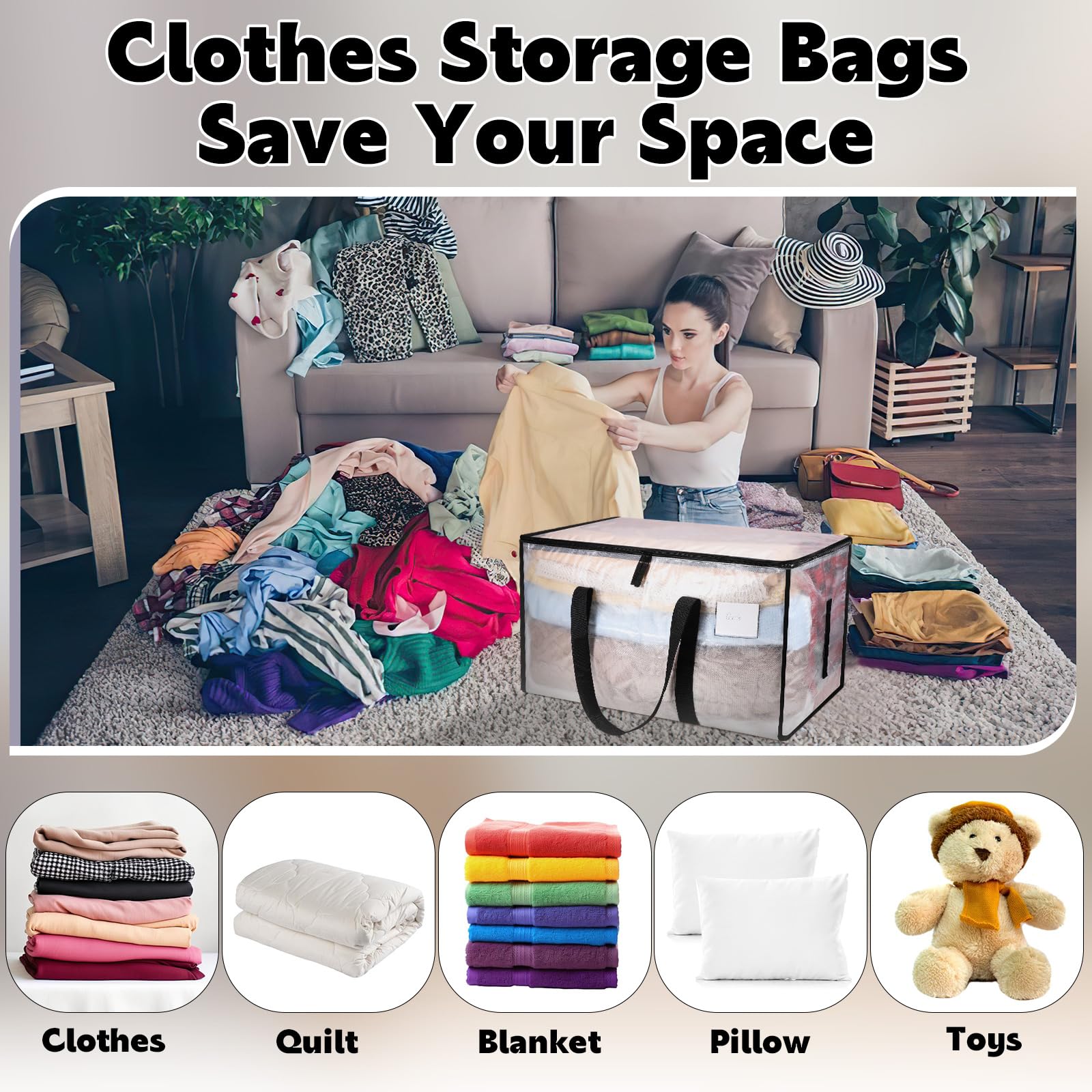 1. 【Grosse Kapazität erfüllt Ihre Bedürfnisse】 3er-Pack Kleideraufbewahrungstasche, jede Aufbewahrungstasche ist 91 l. Grosse Grösse, geeignet für den Einsatz als Aufbewahrungstasche.