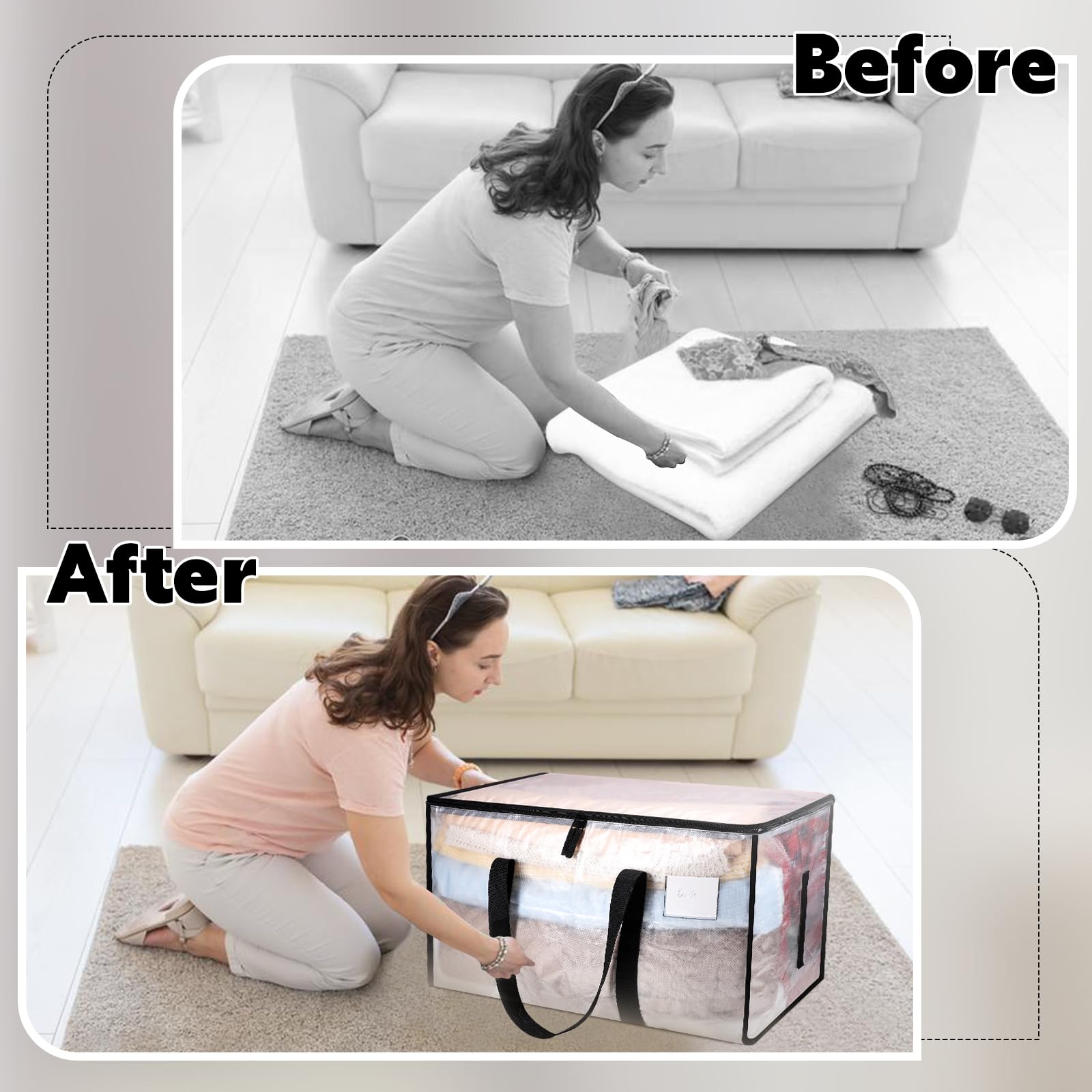 Yafe Grosse Aufbewahrungsboxen für Kleidung mit Deckel, 91 l, transparente Kapazität, Aufbewahrungsbeutel, Organizer, Umzugstaschen, Verpackungsboxen für Umzug, Kleidung, Bettwäsche, Bettdecke,
