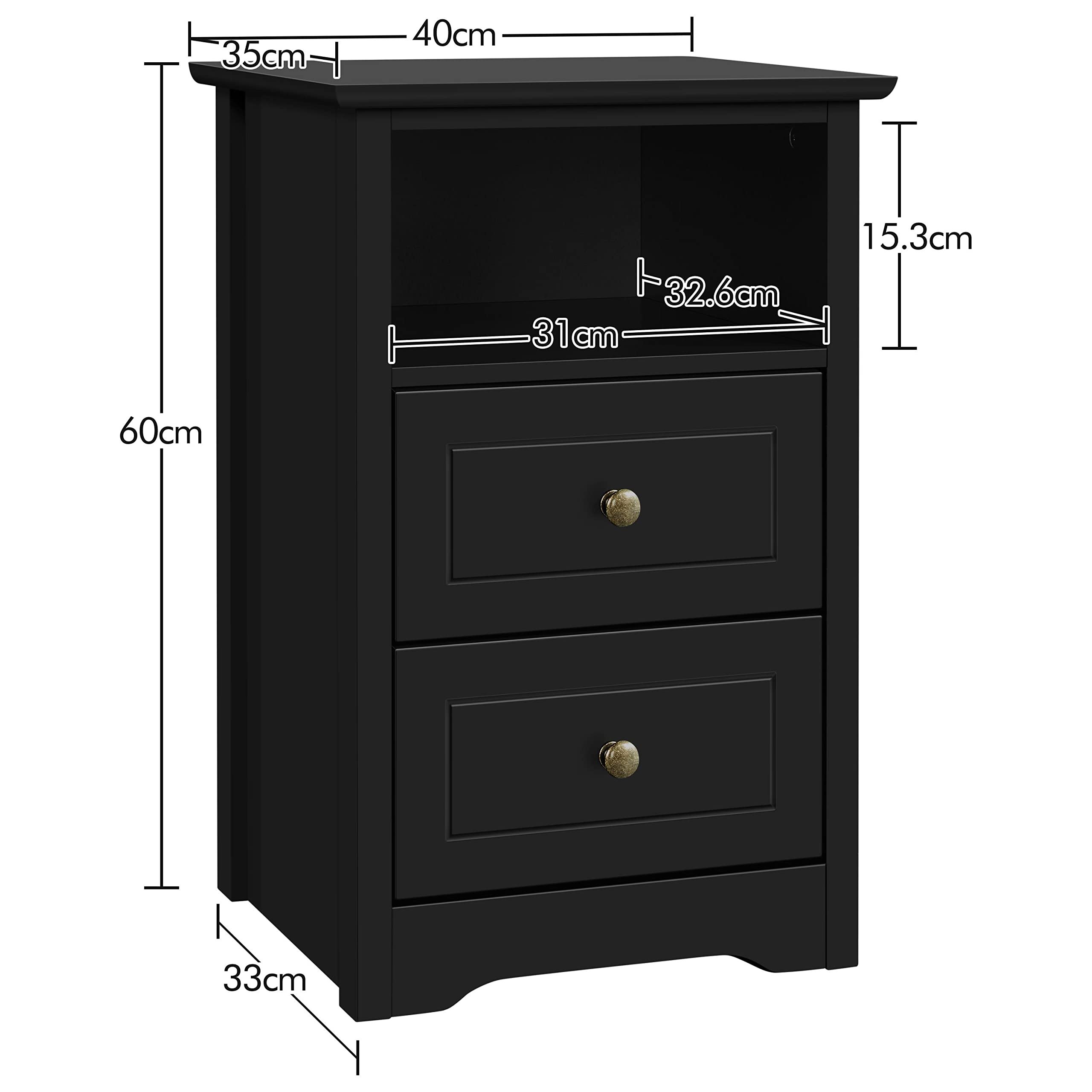 Yaheetech 2er Set Nachtschrank Nachttische mit 2 Schubladen und 1 Ablagefach Modern Schuladenschrank aus Holz Boxspringbett Nachtkommode für Schlafzimmer/Wohnzimmer, 40 x 35 x 60 cm
