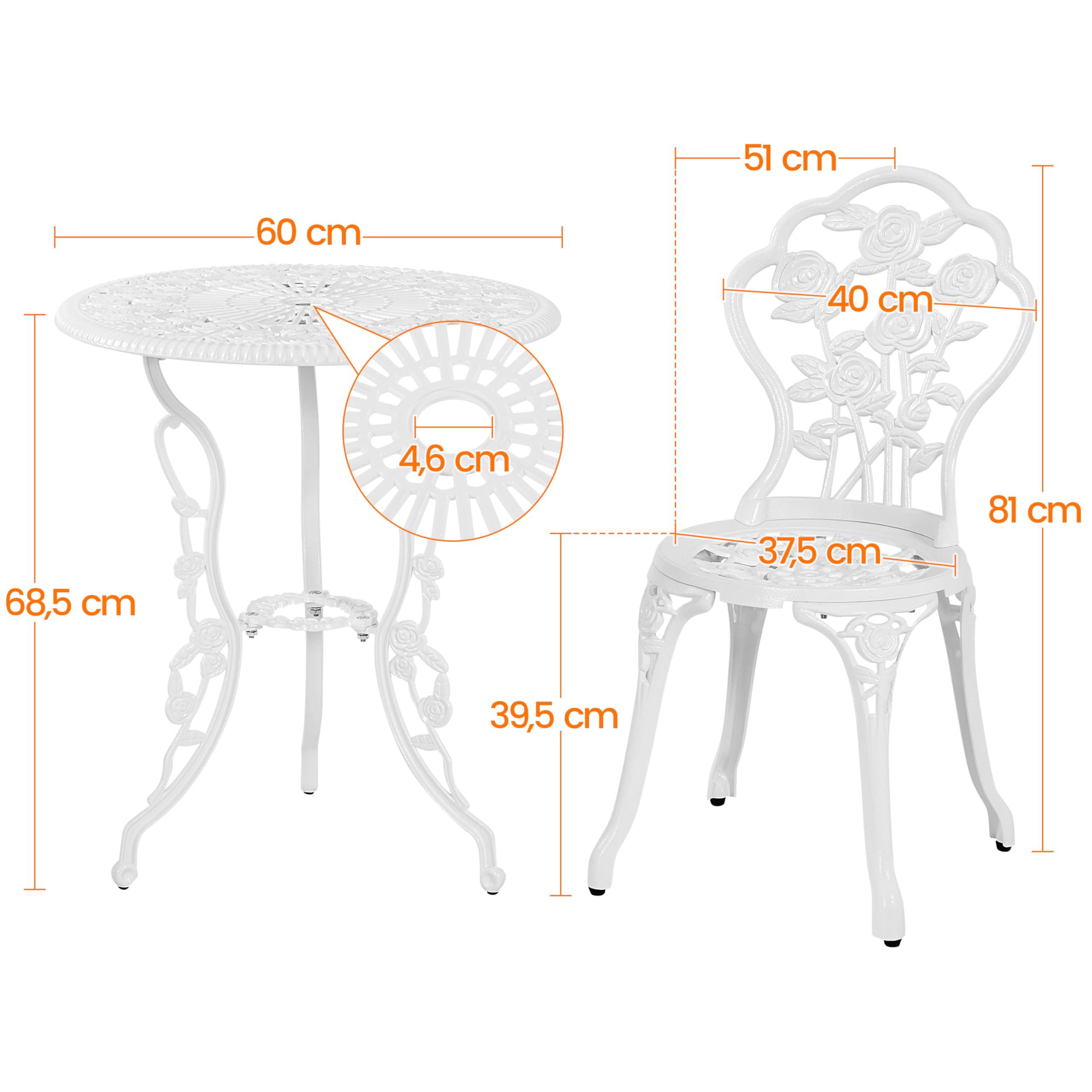 Yaheetech 3tlg. Bistro Set Balkonset Gartenset mit Stühlen Gartenmöbel-Set Zwei Sitzhocker Gartenmöbel im antiken Stil Aluguss Weiss