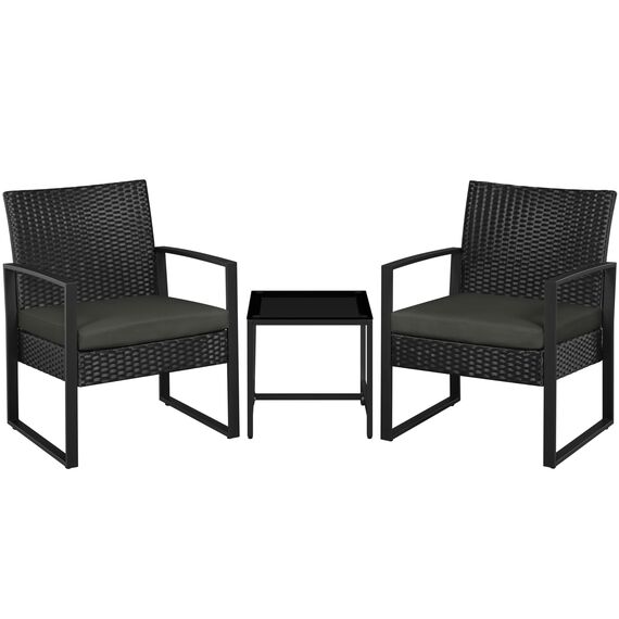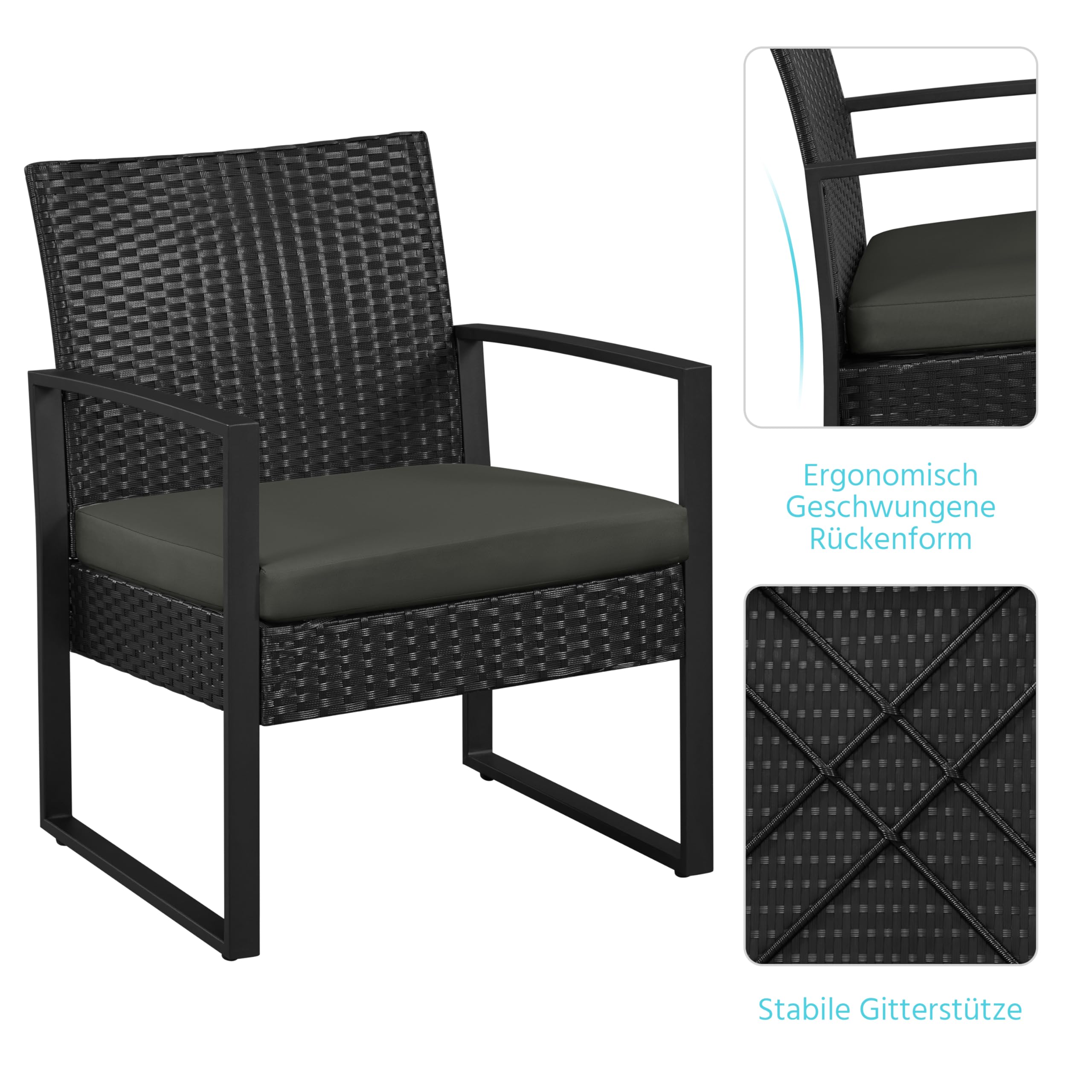 Yaheetech Balkonmöbel Set, Gartenmöbel-Set aus PE-Polyrattan Wetterfest inkl. 2 Stühle mit Sitzkissen & Tisch, 3 Teilig Terrassenmöbel Sitzgruppe Lounge Set für Balkon/Terrasse/Garten, Schwarz-Grau