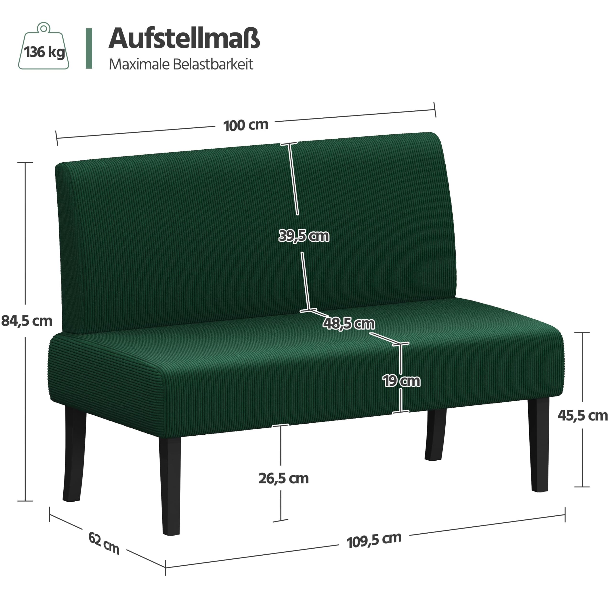 Yaheetech Küchensofa 2-sitzer Sitzbank Polstersofa aus Cordstoff Doppelsofa ohne Armlehnen Stoffsofa Loungesofa fürs Wohnzimmer/Eingangsbereich/Büro, Grün