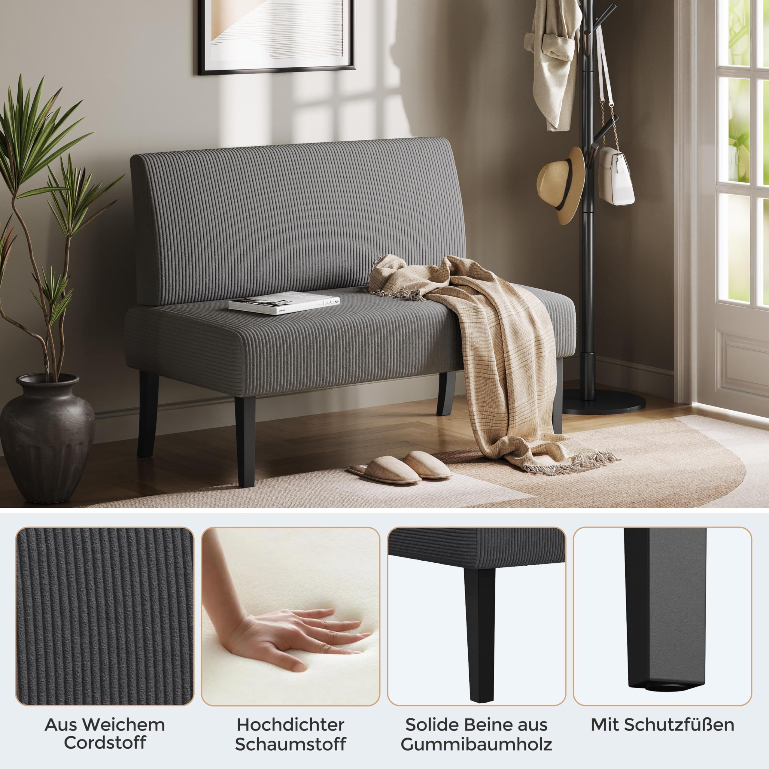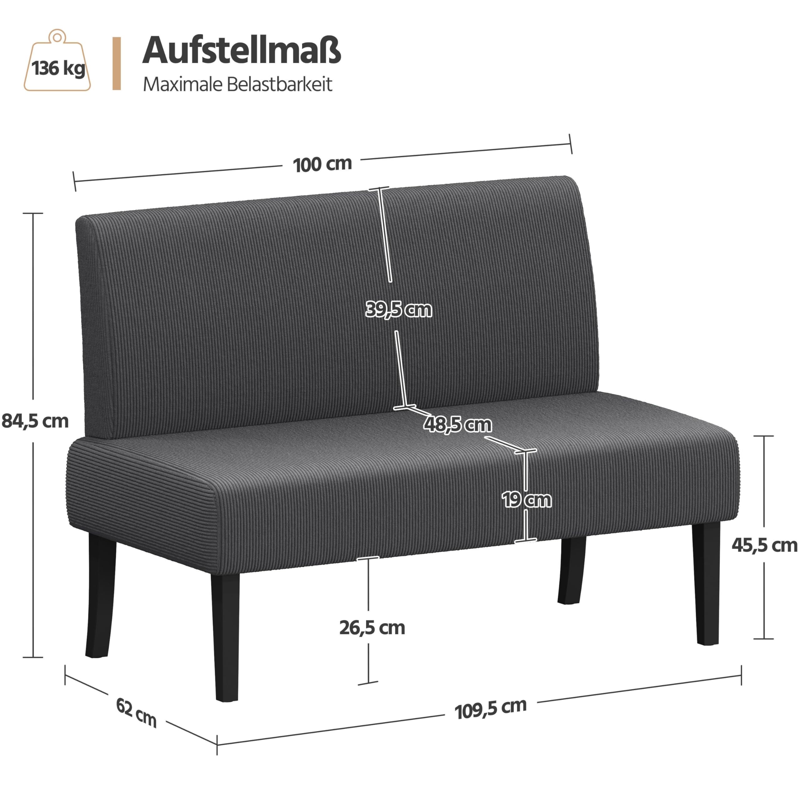 Yaheetech Küchensofa 2-sitzer Sitzbank Polstersofa aus Cordstoff Doppelsofa ohne Armlehnen Stoffsofa Loungesofa fürs Wohnzimmer/Eingangsbereich/Büro, Grau