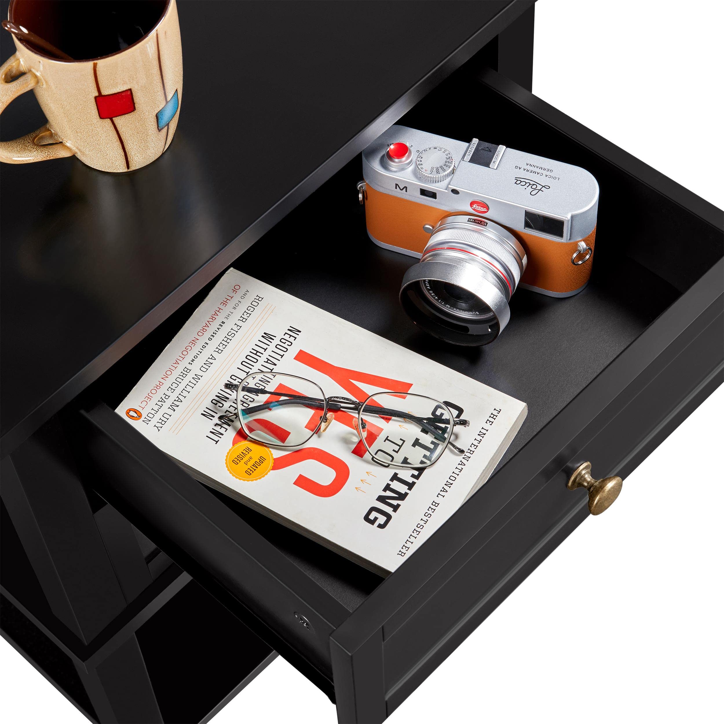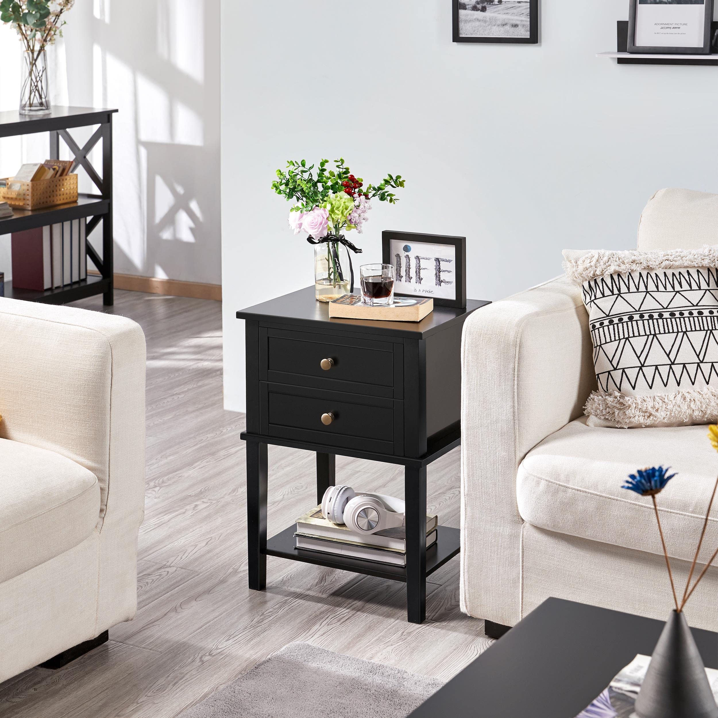 Yaheetech Nachttisch, Nachtkommode, Beistelltisch mit Schubladen und Ablage, Nachtschrank, Schlafzimmer, Wohnzimmer, einfacher Aufbau, Holz, Nordisch-Design, Schwarz