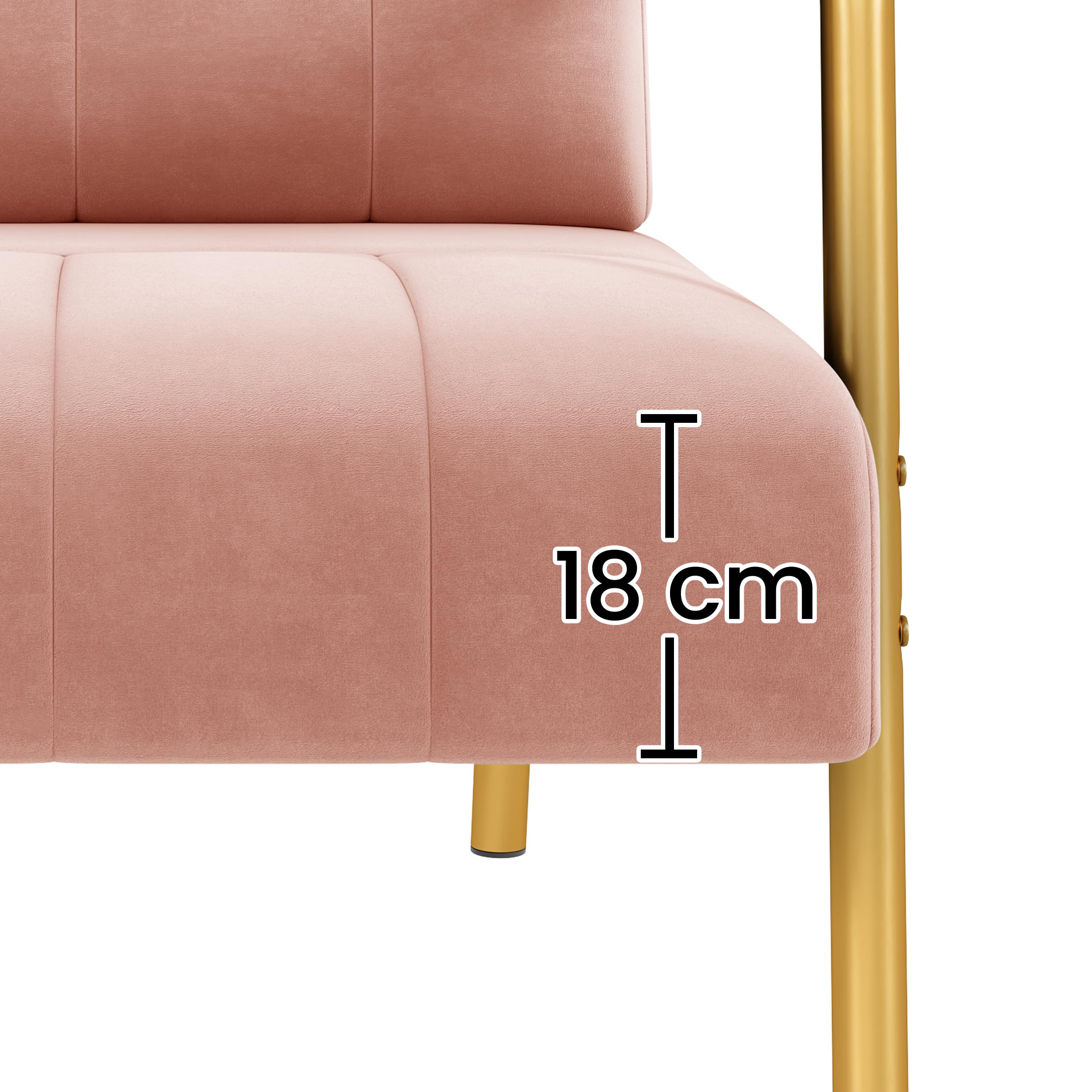 Durch den grosszügigen Sitz, die leicht schräge Rückenlehne mit Lendenkissen und die stabile Konstruktion bietet dieser Polstersessel ein bequemes Sitzgefühl. Der Bezug aus samtigem Stoff trägt zum komfortablen Sitzerlebnis bei und ist auch pflegeleicht. Die goldfarbenen, schlanken Metallbeine verleihen dem Sessel eine elegante Optik und bieten gleichzeitig hohe Stabilität und Belastbarkeit.