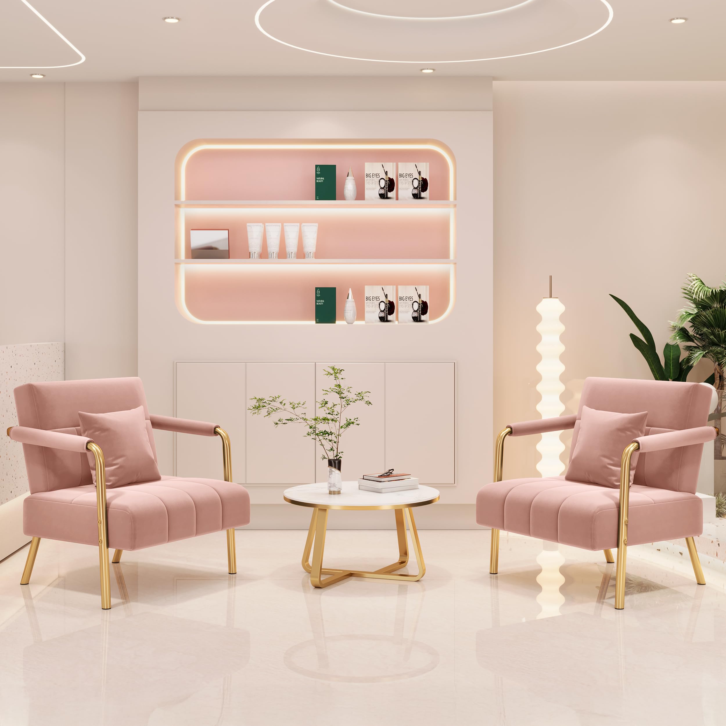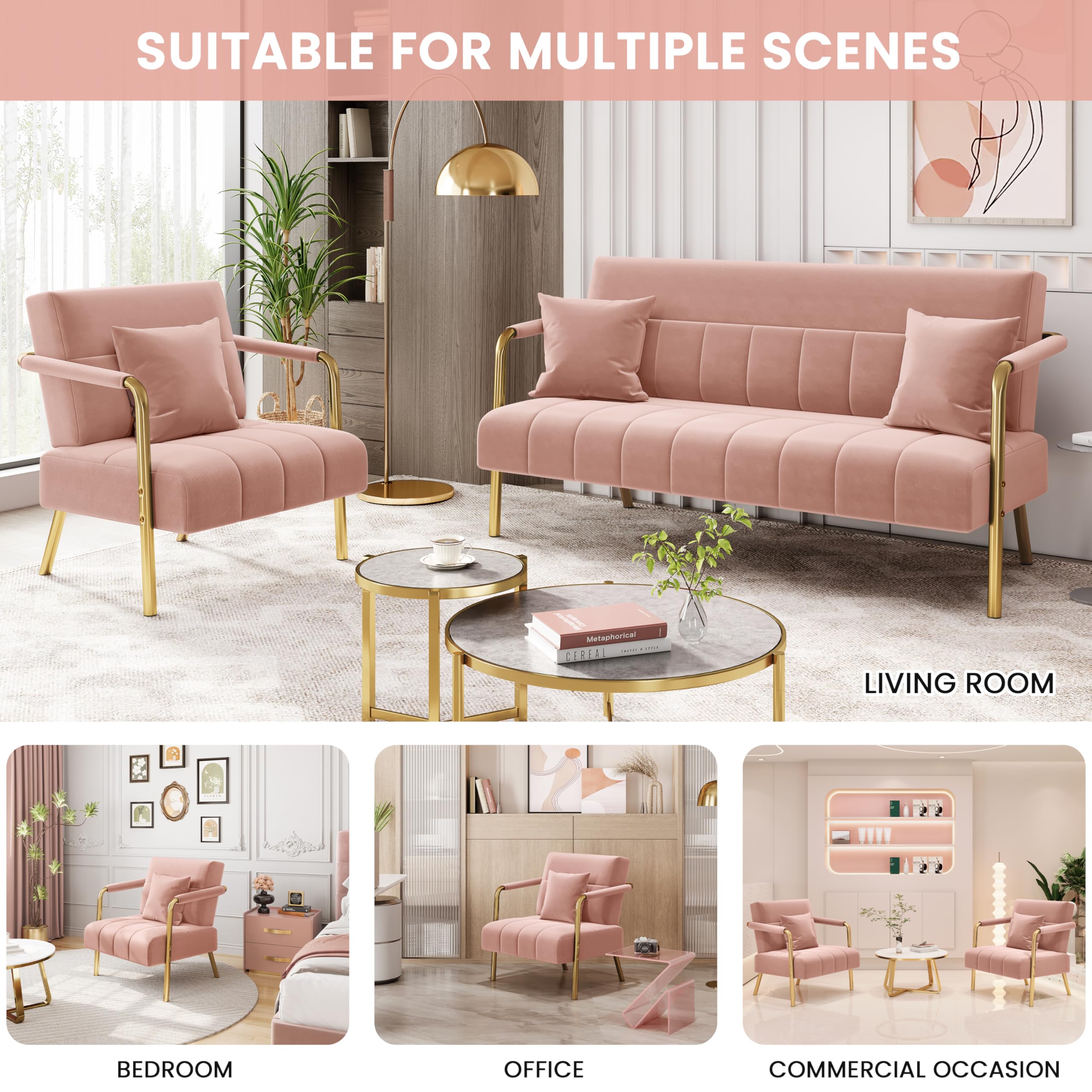 Yaheetech Polstersofa mit Armlehnen & Beine aus Metall Modernes Einzelsofa mit 2 Lendenkissen Loveseat für Wohnzimmer, Heimbüro Rosa