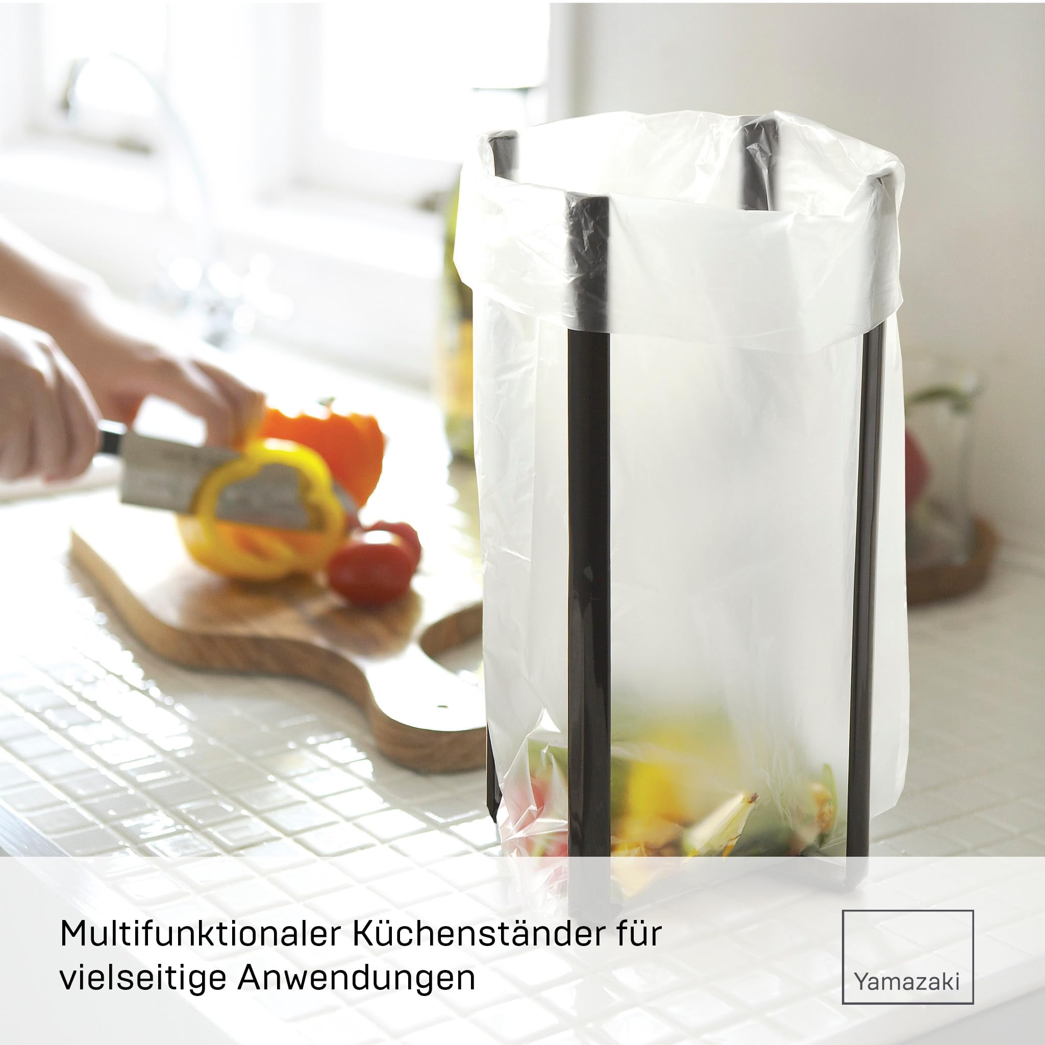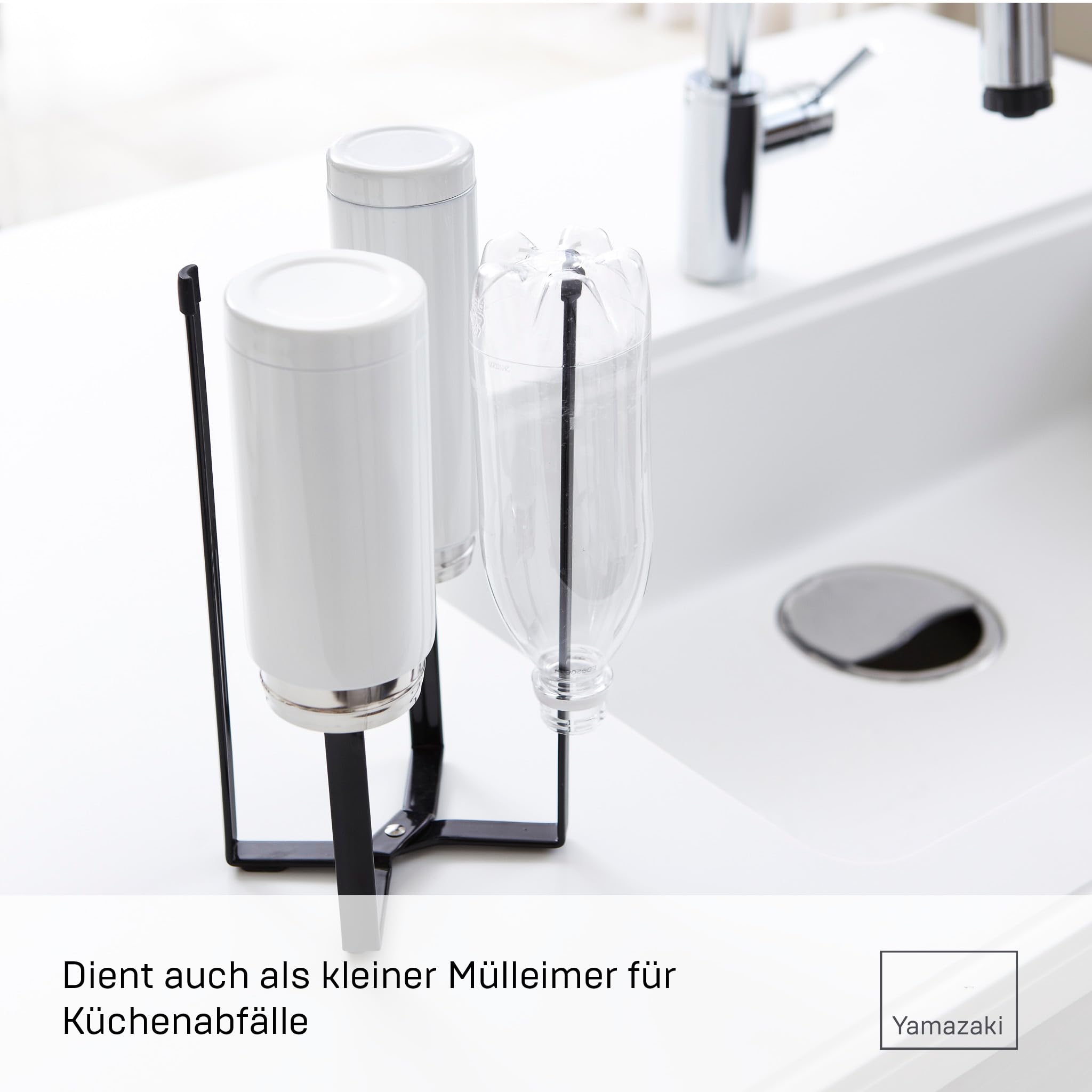 YAMAZAKI Tower Mehrzweckständer für die Küche-Abtropfständer, Flaschenhalter, Bioabfall Behälter, faltbar, Stahl, Acrylharz, Schwarz, 12 x 9,5 x 26,5 cm (LxBxH)