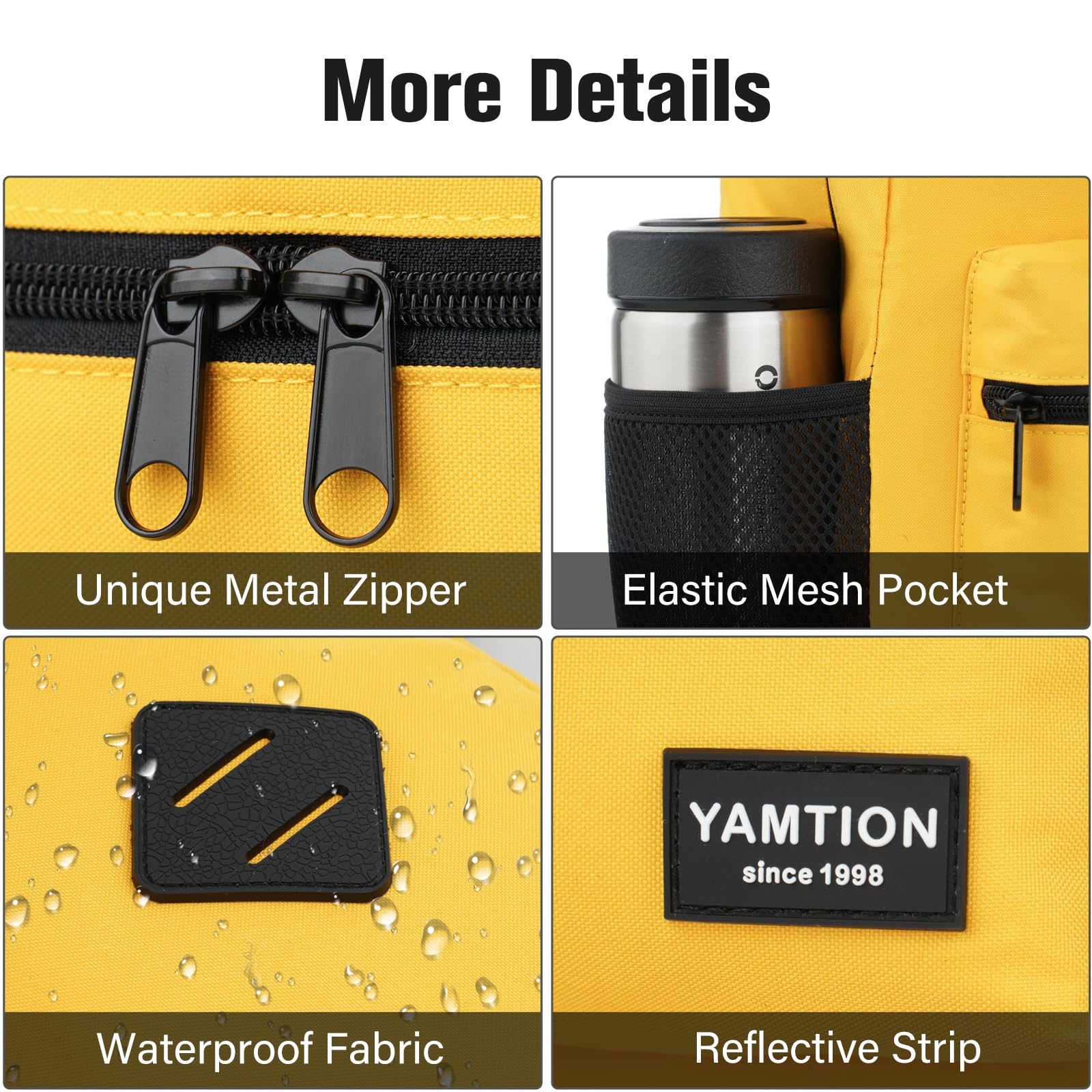 Wassertropfen rutschen von der Oberfläche der Schultasche, sodass Sie sich keine Sorgen machen müssen, nass zu werden. (Aber bitte lassen Sie Rucksack nicht lange bei starkem Regen "baden".)
