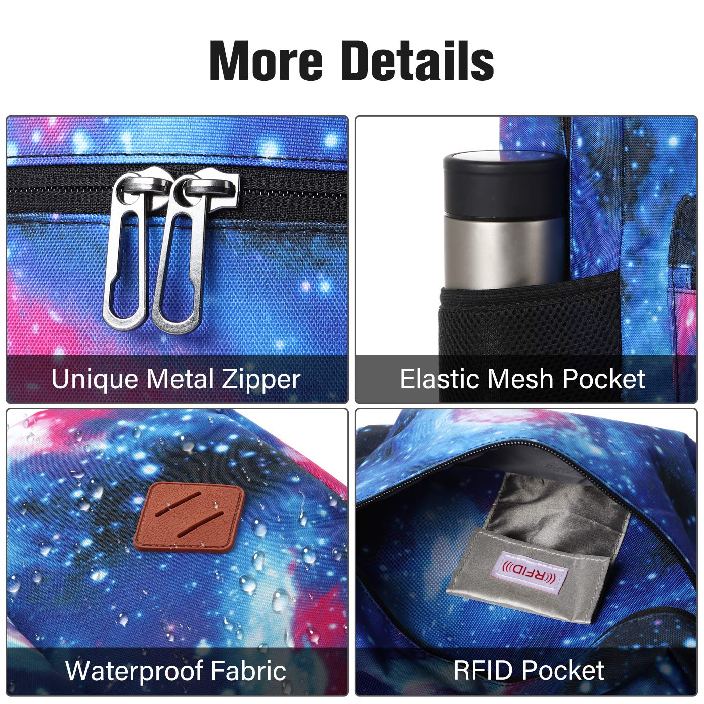 Wassertropfen rutschen von der Oberfläche der Schultasche, sodass Sie sich keine Sorgen machen müssen, nass zu werden. (Aber bitte lassen Sie Rucksack nicht lange bei starkem Regen "baden".)