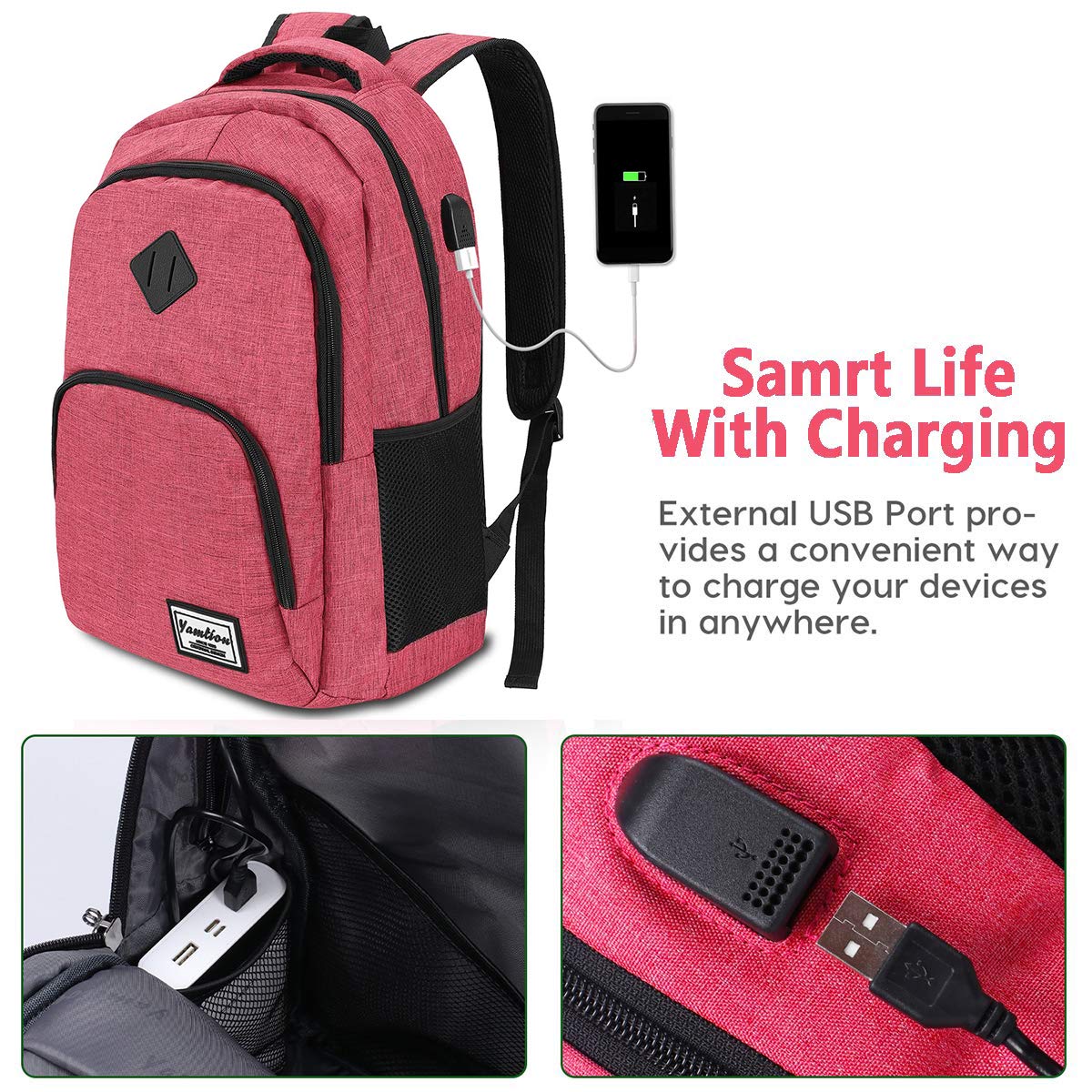 YAMTION Rucksack Laptop für Damen Frauen Mädchen Schulrucksack mit USB-Ladeanschluss Oxford,20-35L