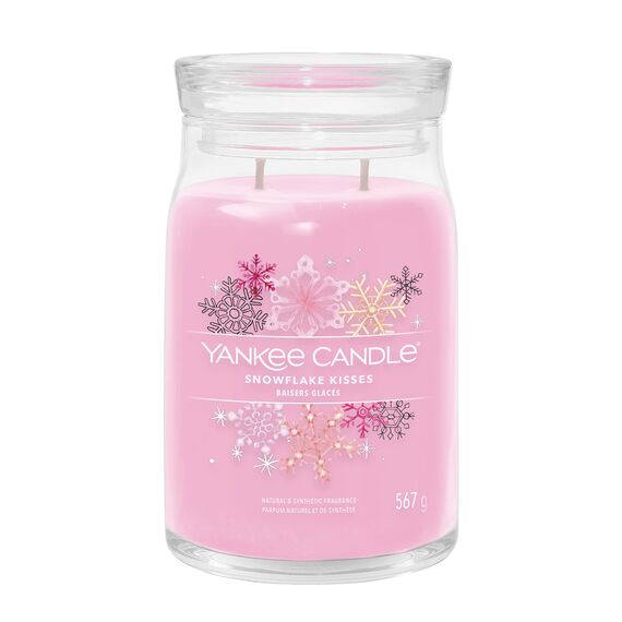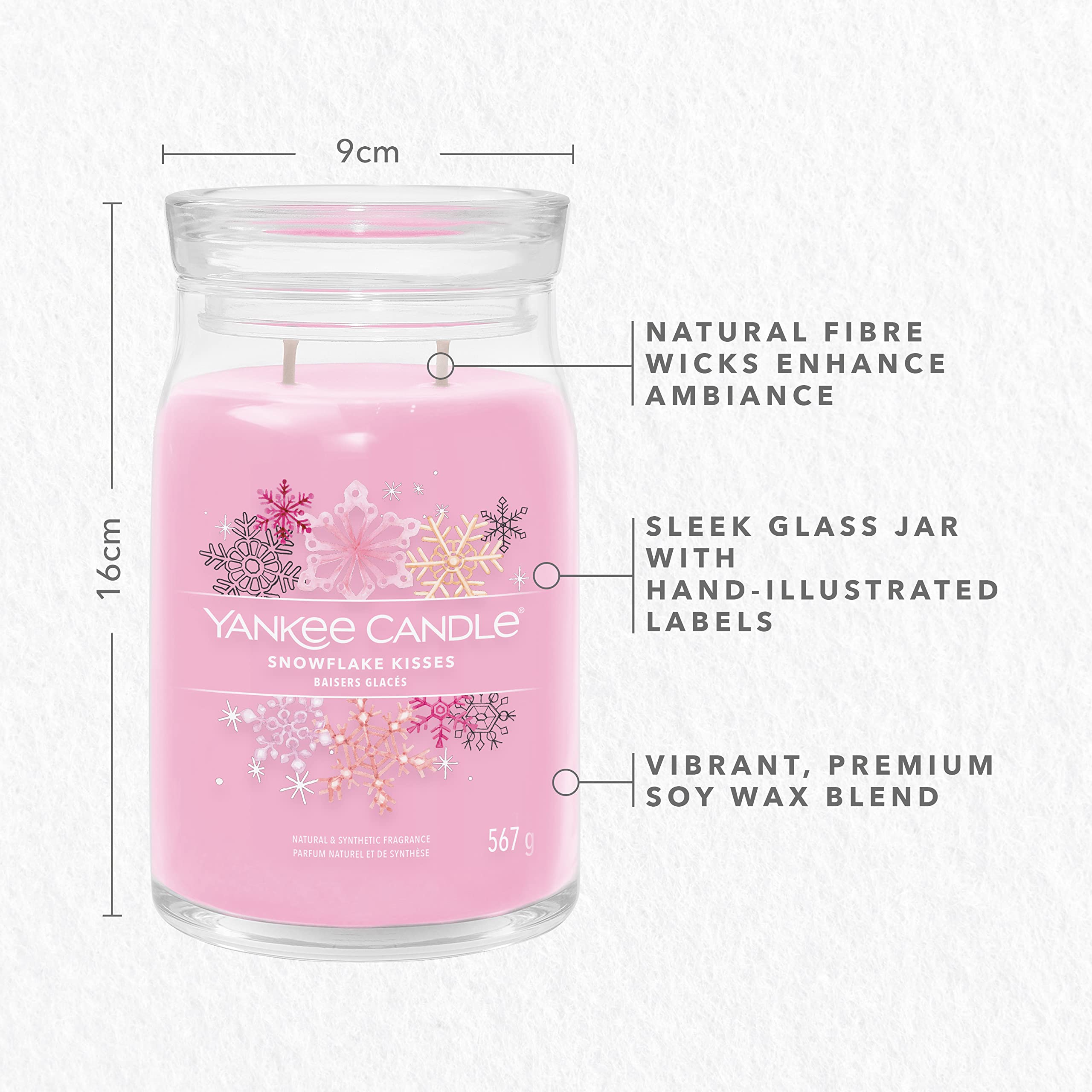 Yankee Candle Signature Duftkerze ; grosse Kerze mit langer Brenndauer „Snowflake Kisses“ ; Soja-Wachs-Mix ; Perfekte Geschenke für Frauen