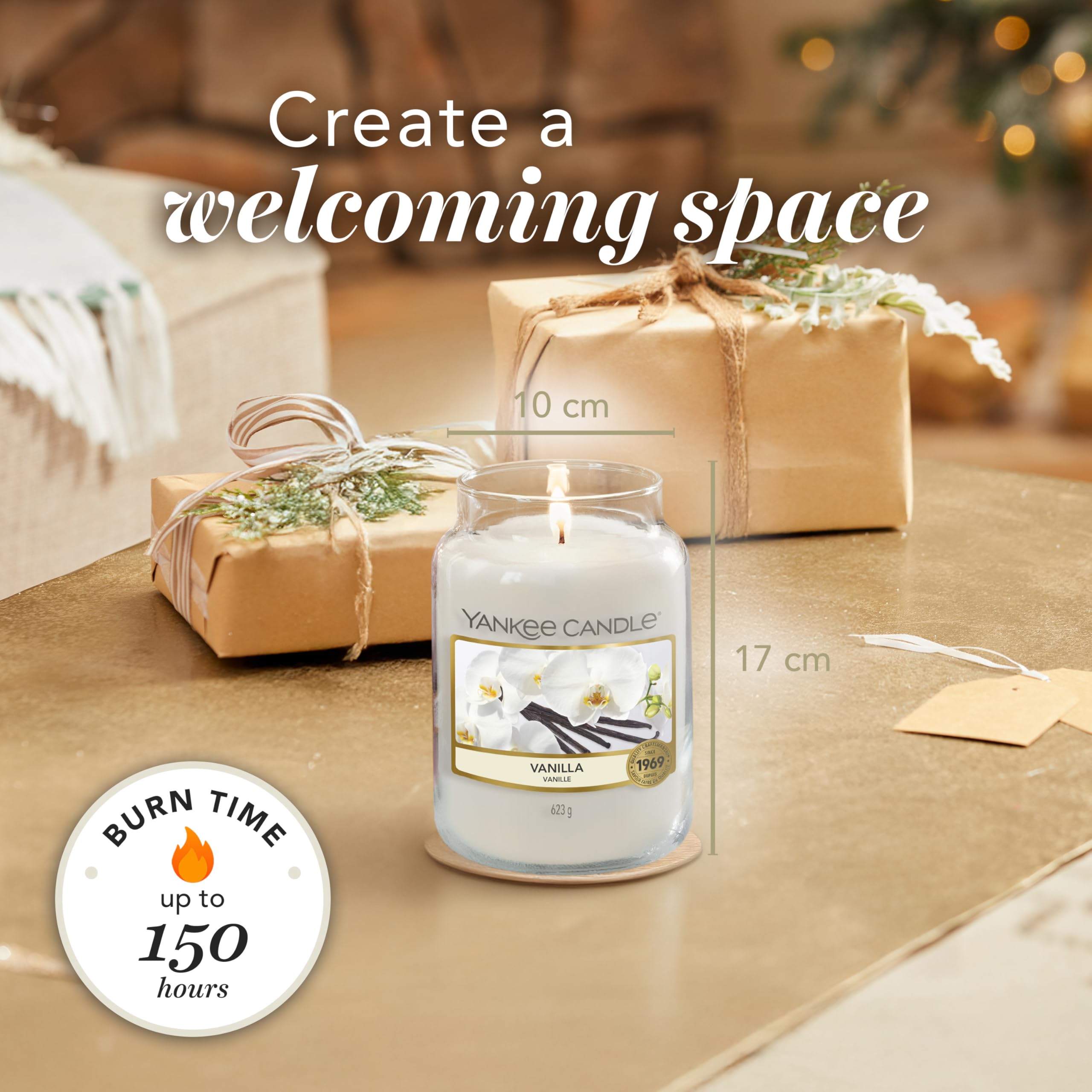 Yankee Candle Duftkerze im Glas (gross) | Vanilla | Kerze mit langer Brenndauer bis zu 150 Stunden | Perfekte Geschenke für Frauen