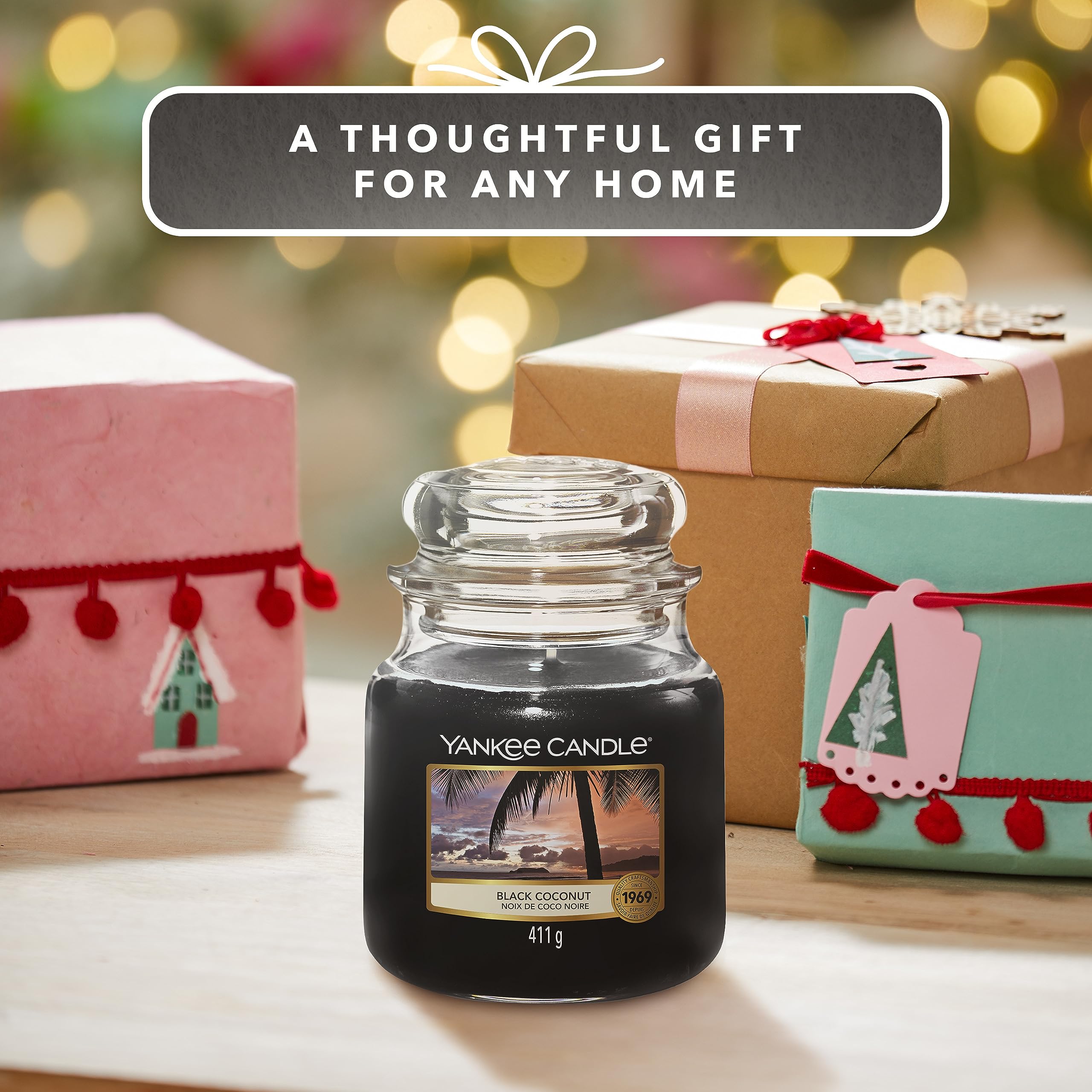 Yankee Candle Duftkerze im Glas (mittelgross) | Black Coconut | Brenndauer bis zu 75 Stunden