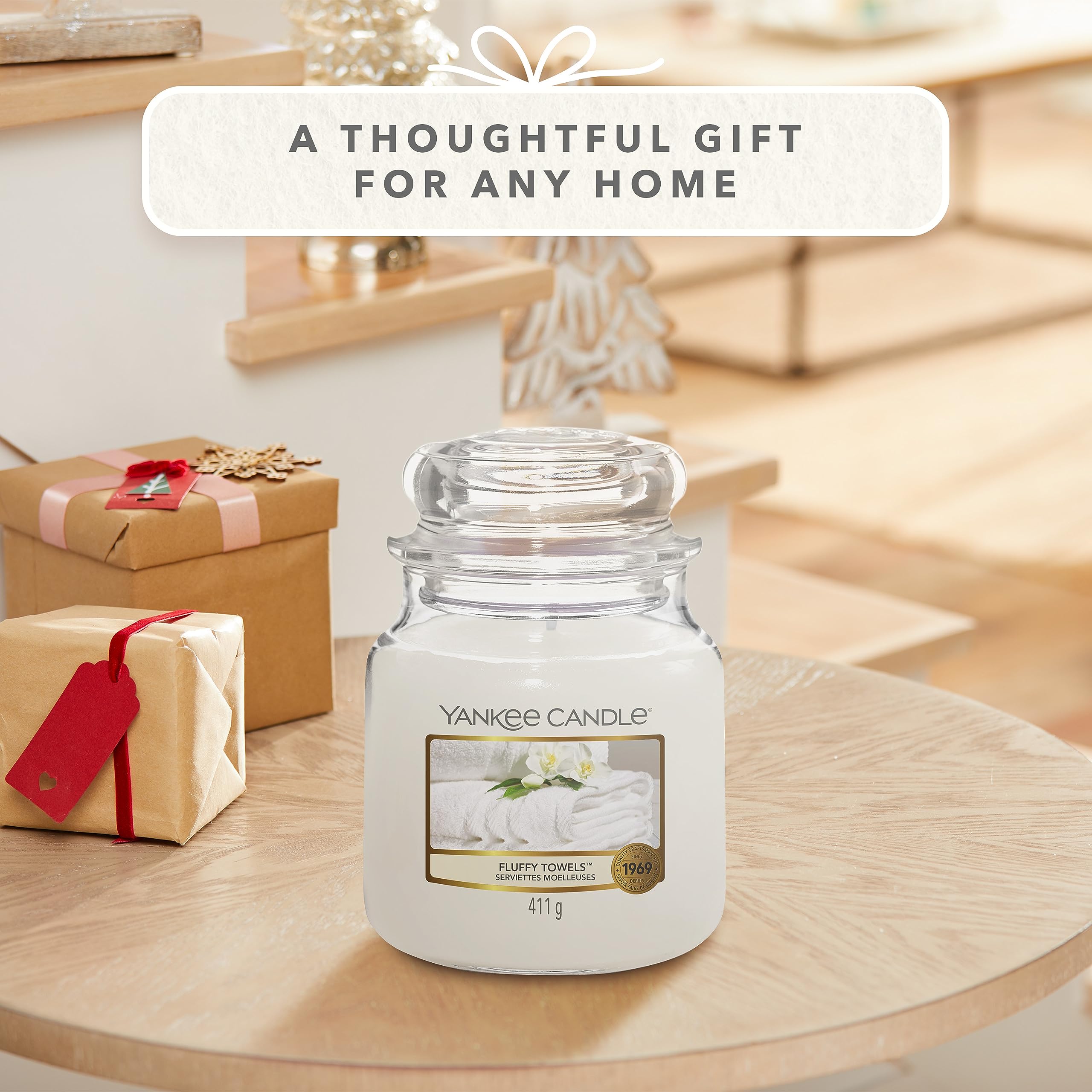 Yankee Candle Duftkerze im Glas (mittelgross) | Fluffy Towels | Brenndauer bis zu 75 Stunden