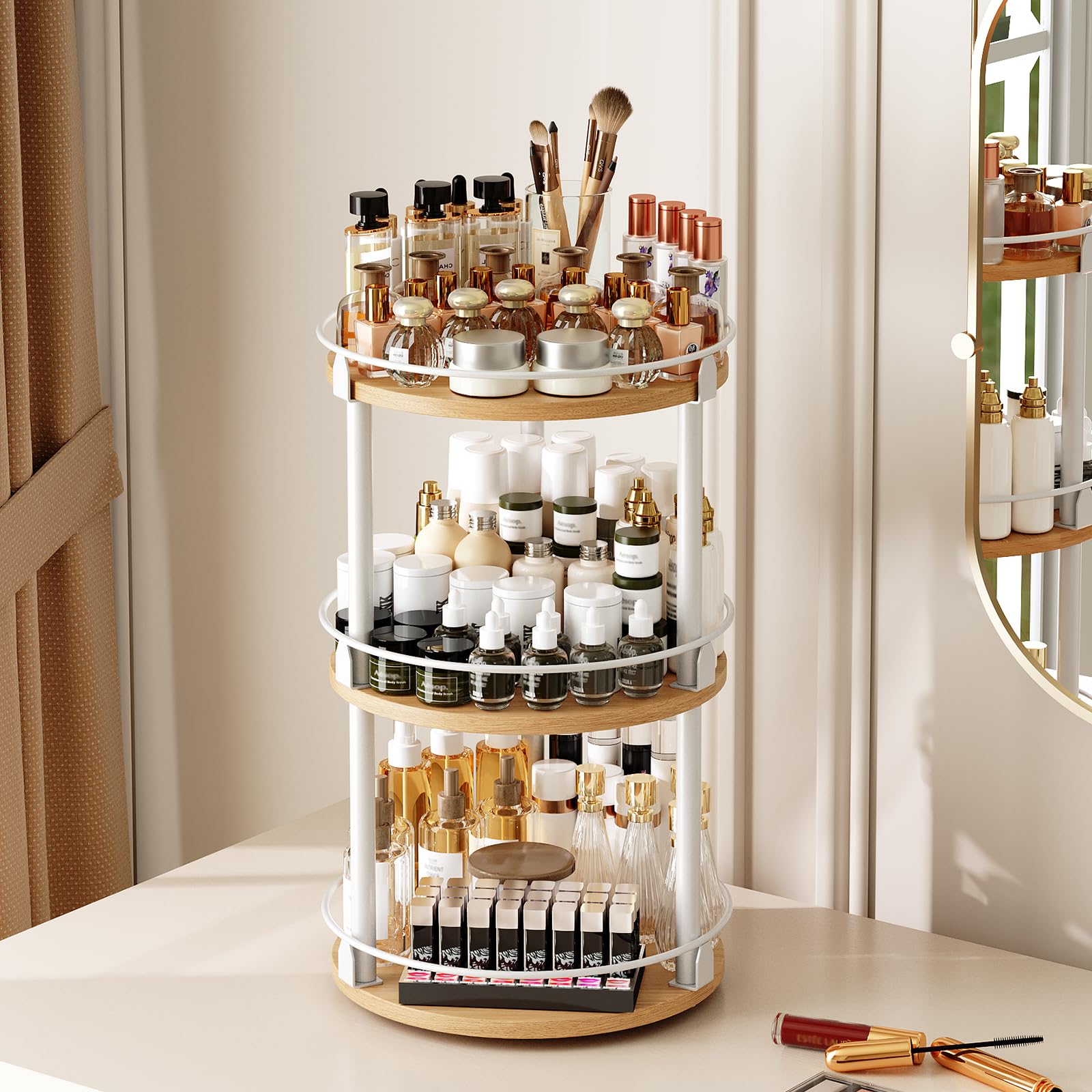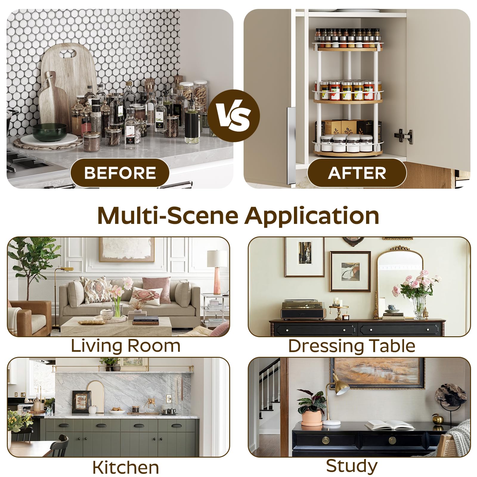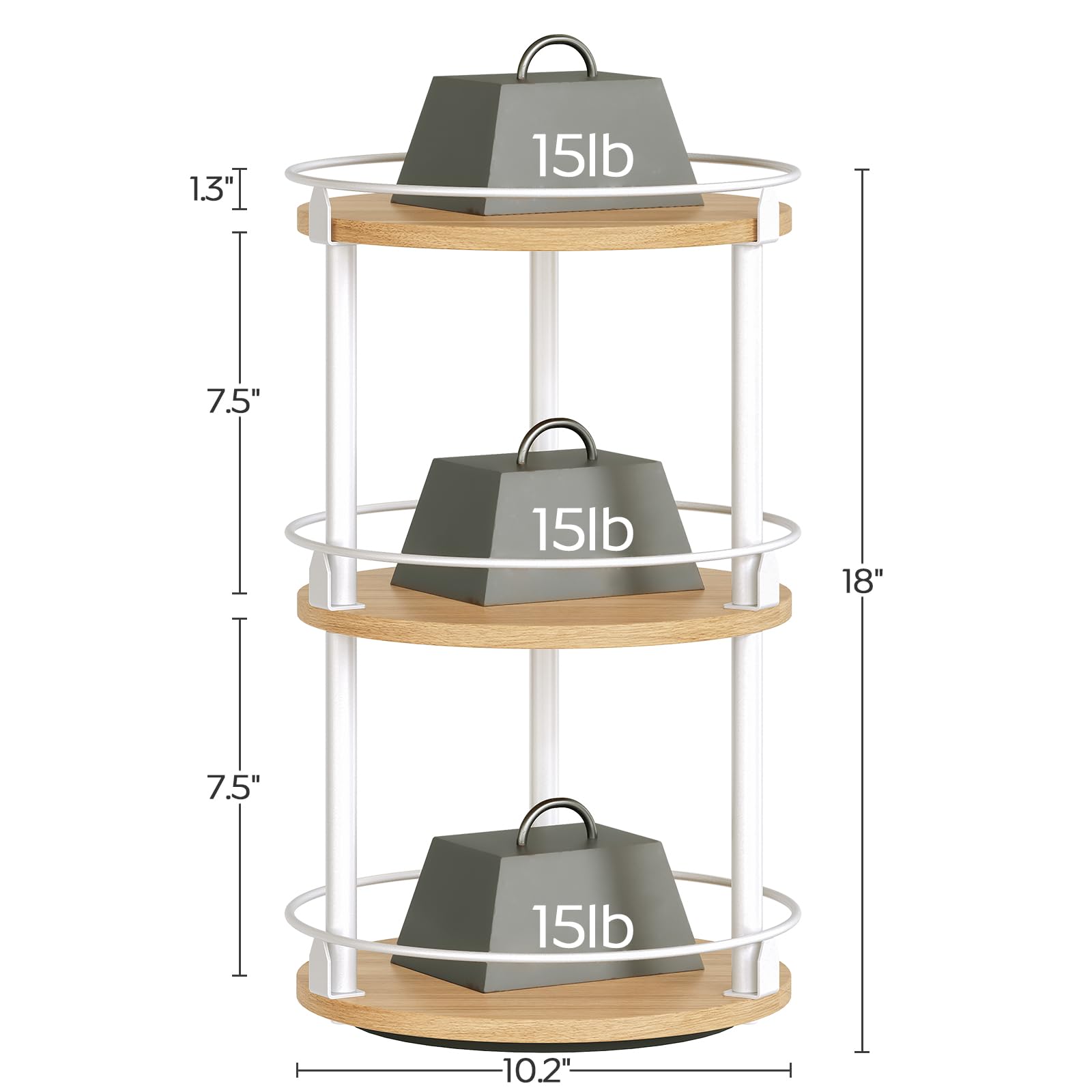 YATINEY Gewürzregal, 3-stufiger drehbarer Organizer, kreisdrehbares Gewürzregal Stehend, kompakter Gewürzhalter mit Drehscheibe, für Küchentheke, Esstisch, Weiss und Natur XSR23WN