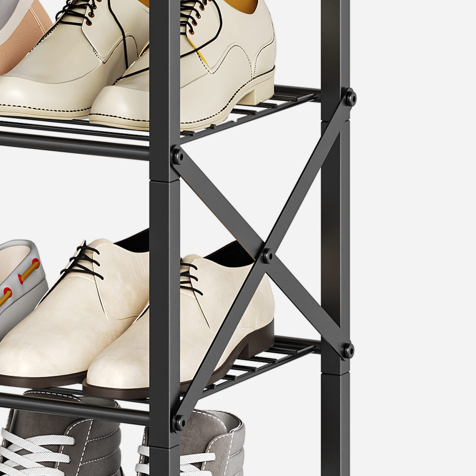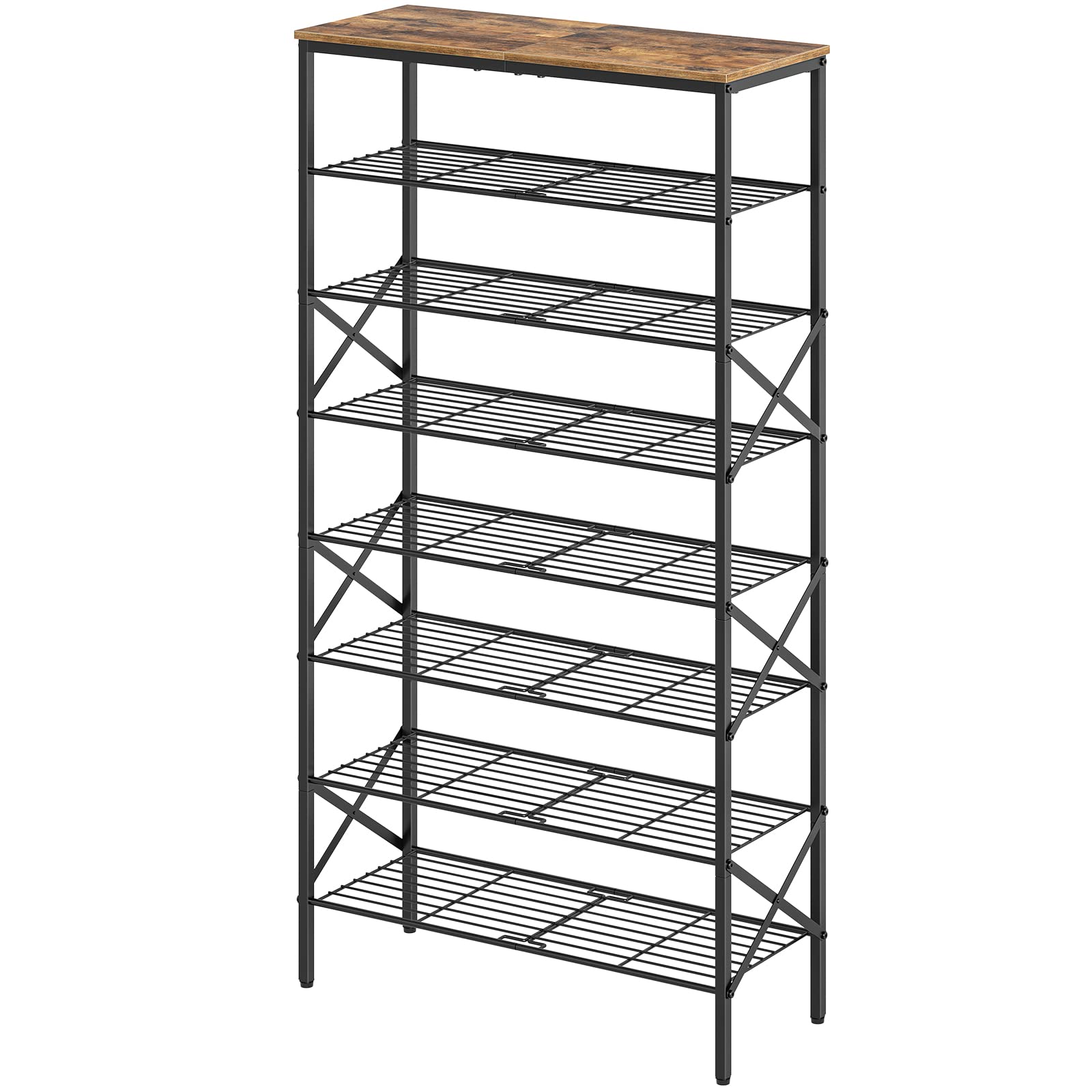 YATINEY Schuhregal hoch, Schuhablage mit 8 Ebenen, Schuhschrank mit grosser Kapazität, für 32 Paar Schuhe, Metallrahmen, für Eingangsbereich, Flur, Vintagebraun und Schwarz XSS08BR