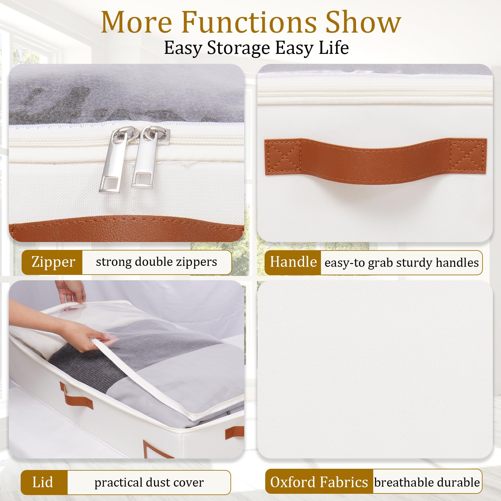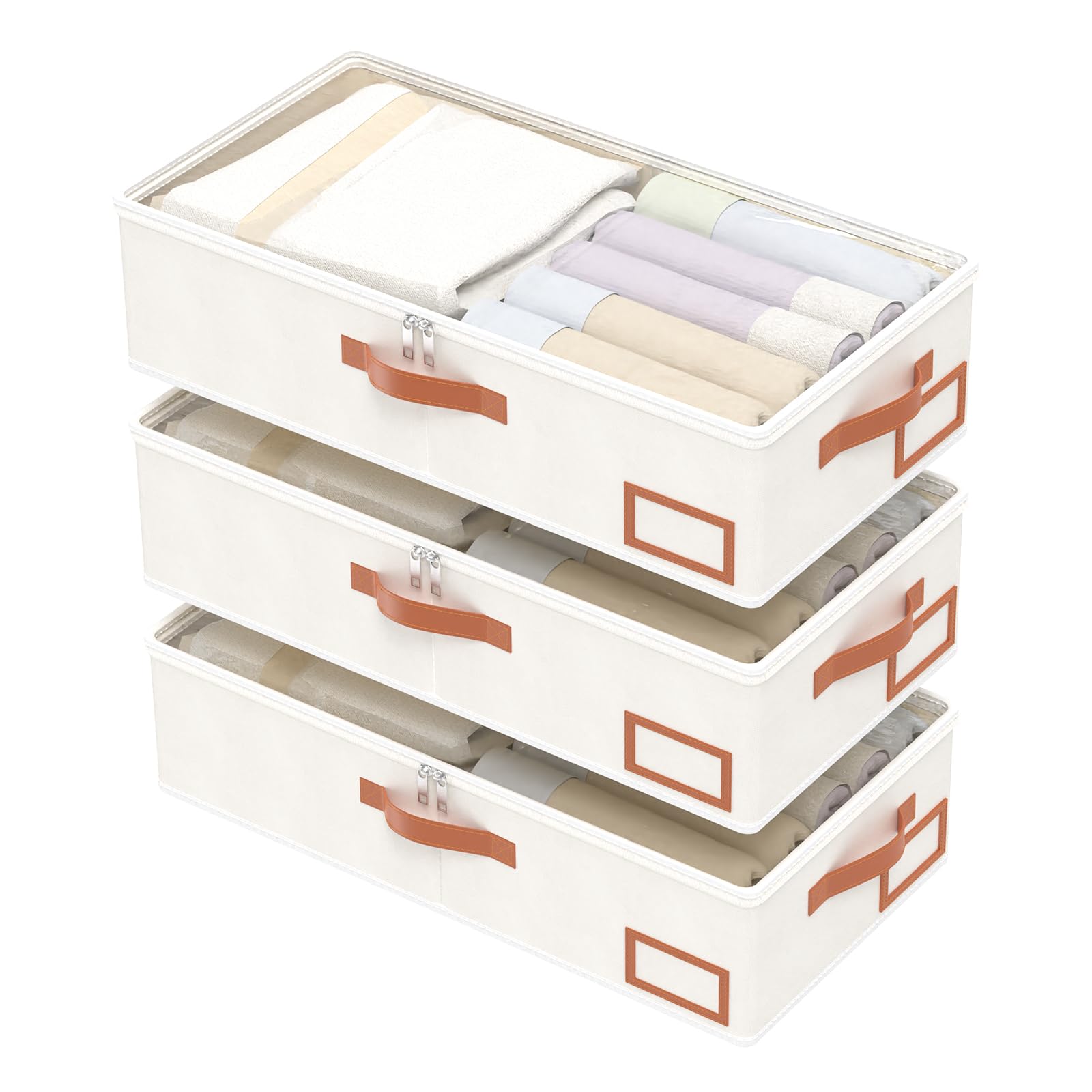 Yawinhe 3 Stück Unterbettkommode, Unterbett-Aufbewahrungstasche Kleideraufbewahrung, Faltbare Aufbewahrung Kleidung mit Klarem Fenster Für Bettdecken, Decken, Steppdecken, 60x30x15cm, Beige