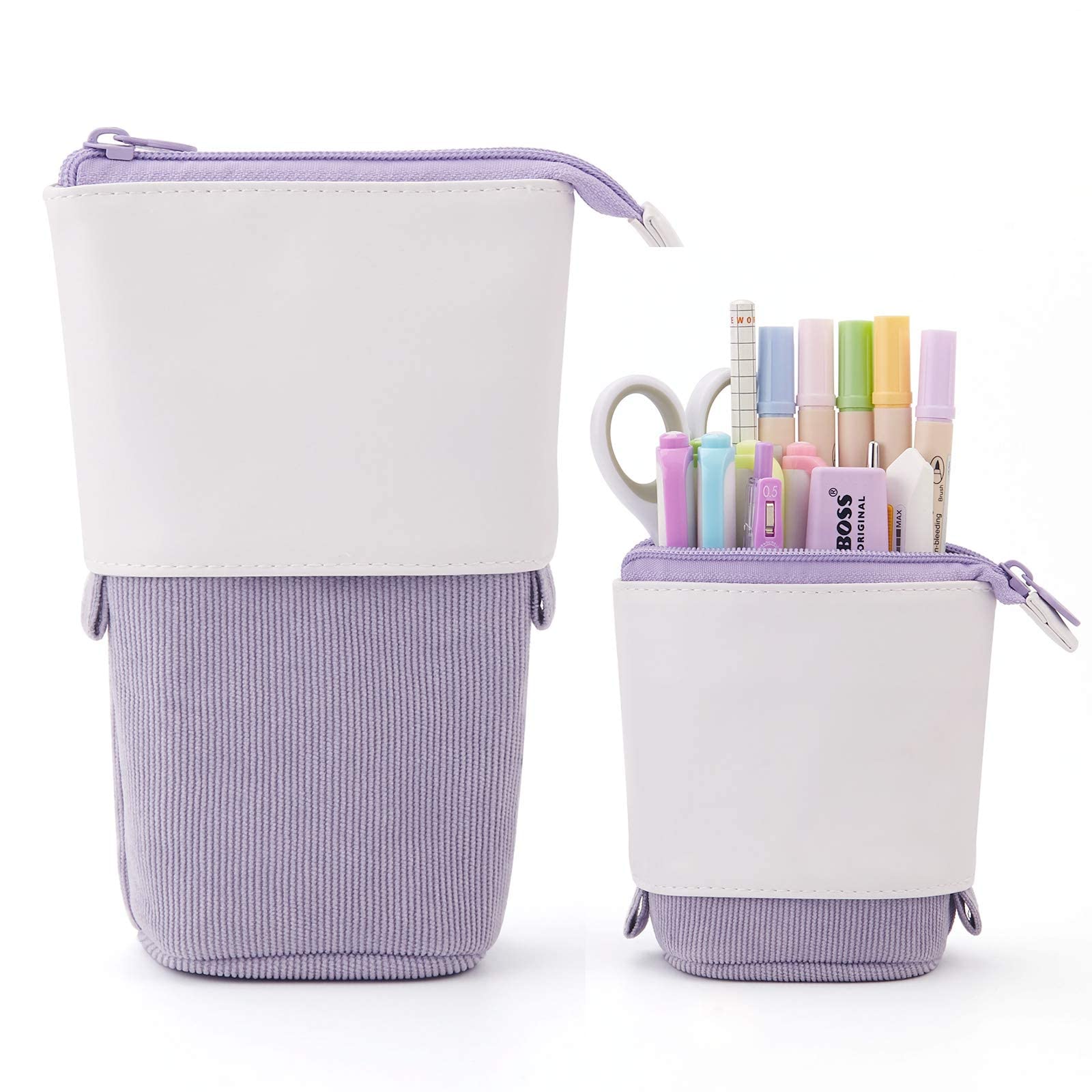 YeahBoom Federmäppchen Reissverschluss,2-in-1 Schlampermäppchen und Stifteköcher,Federmäppchen Mädchen,Ständer Bleistifthalter,Teleskopisch Mäppchen,Stifteköcher für Teenager Schülerin