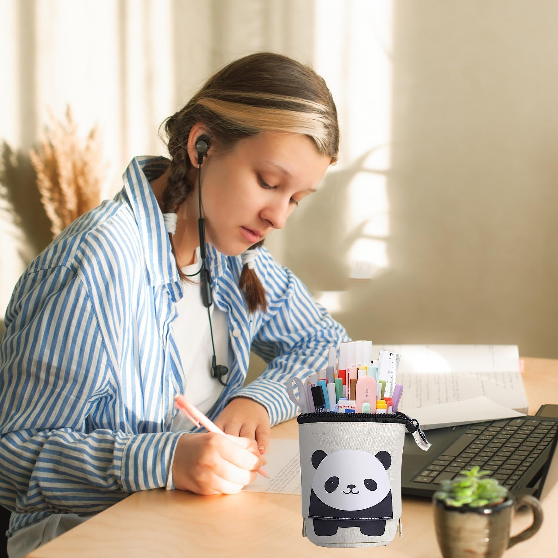 ✨【Schiebe-Bleistifteetui und Ständer】 - Die niedliche Bleistifttasche verfügt über ein Teleskop-Design, das sowohl als Bleistifttasche als auch als Bleistiftbecher dient. Es gleitet leicht und hält gut. Es gibt Reiter, mit denen Sie den oberen Abschnitt abrollen können, sodass das gesamte Gehäuse jetzt zerkratzt erscheint und Sie die obere Hälfte Ihrer Stifte/Bleistifte sehen können.