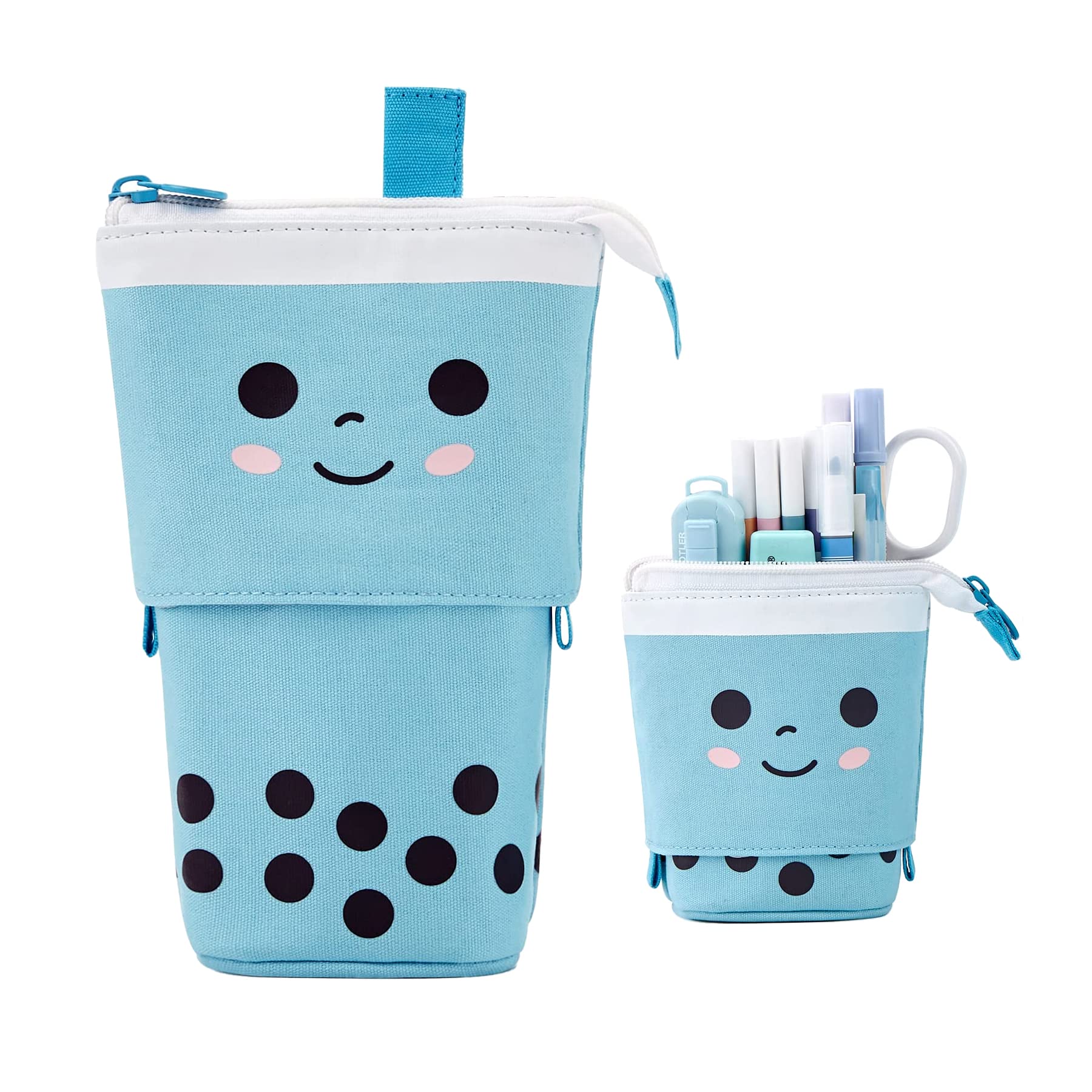 YeahBoom Federmäppchen Reissverschluss,2-in-1 Schlampermäppchen und Stifteköcher,Federmäppchen Mädchen,Ständer Bleistifthalter,Teleskopisch Mäppchen,Stifteköcher für Teenager Schülerin
