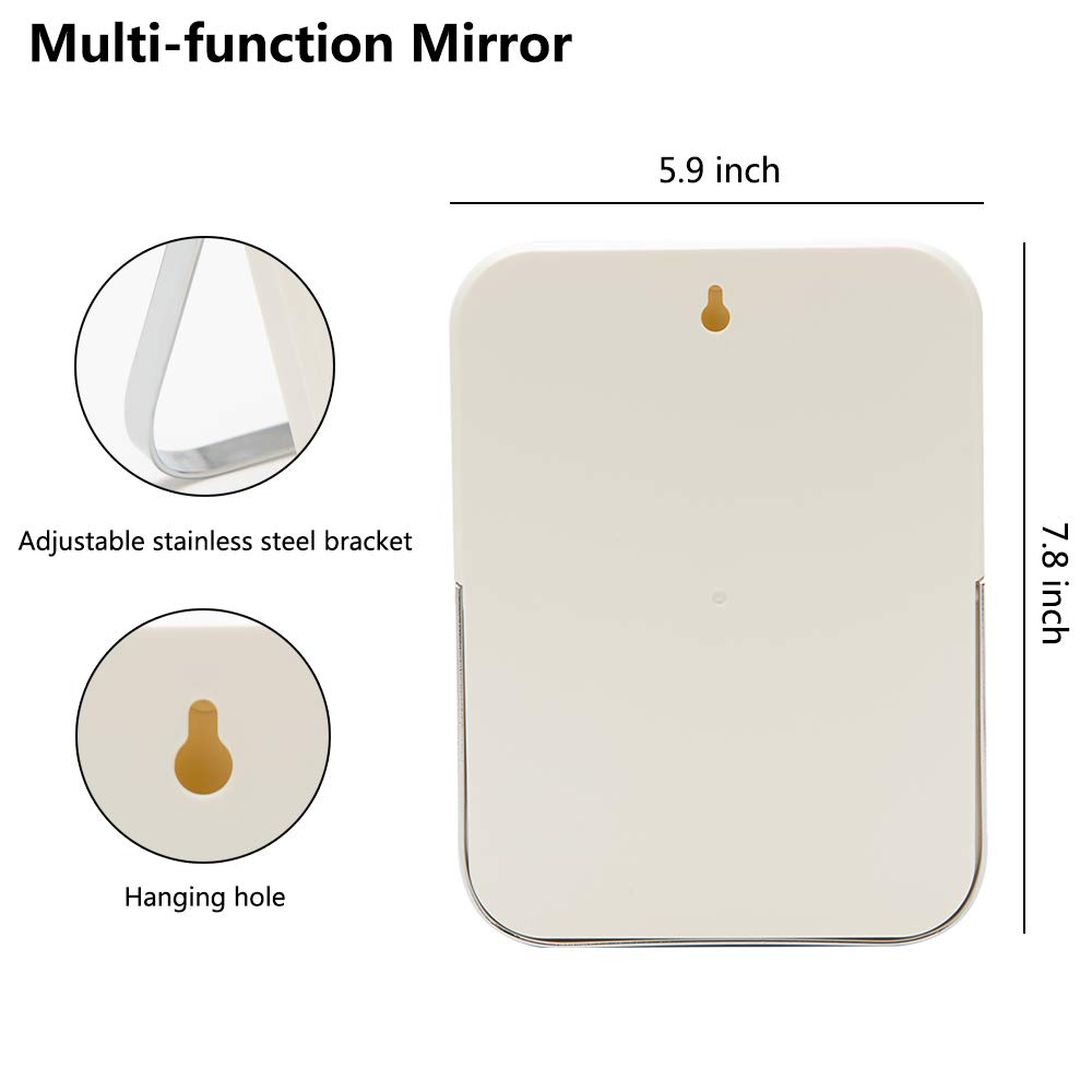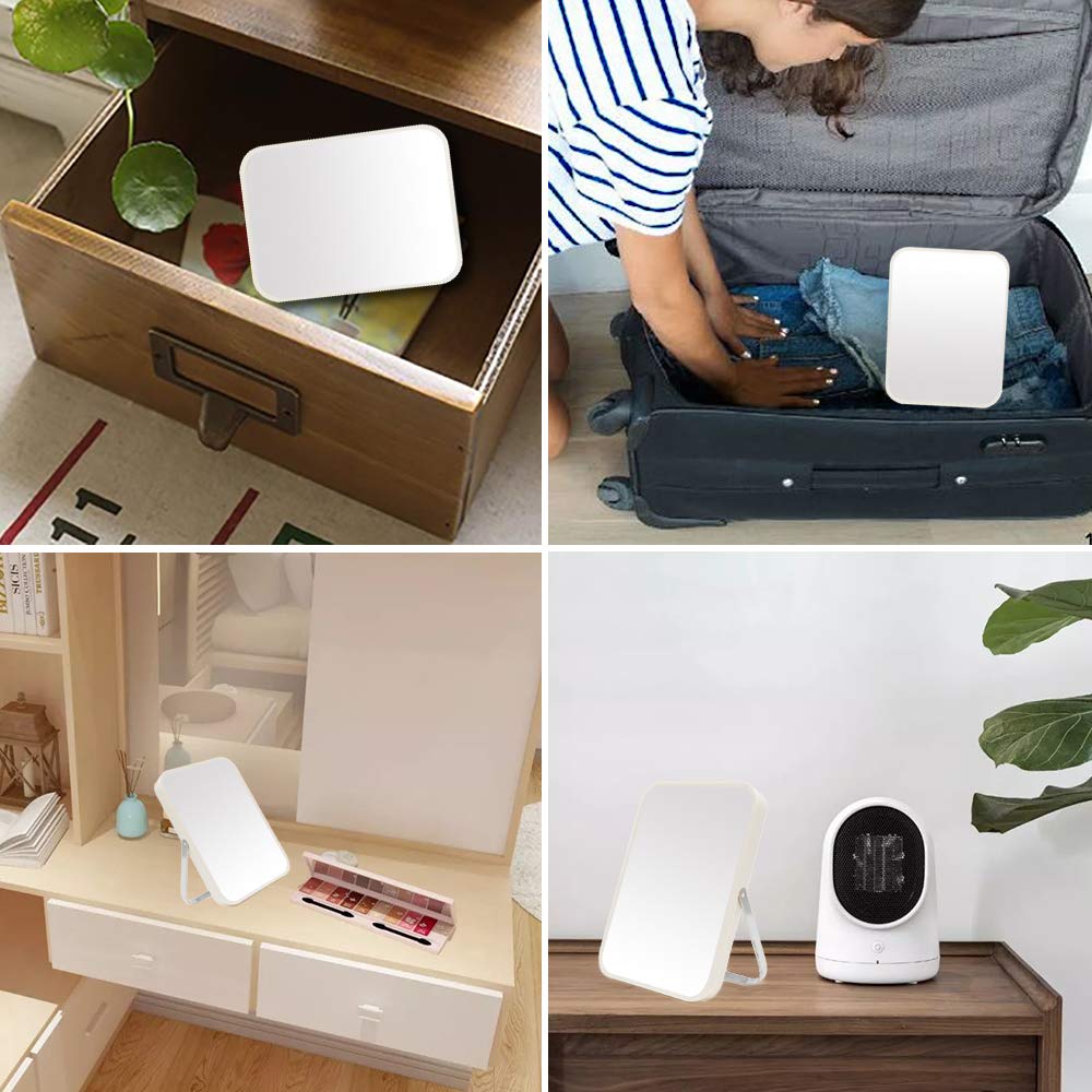 YEAKE Tisch-/Schreibtisch-/Kosmetiktisch-Make-up-Spiegel, 20,3 cm, tragbarer Klappspiegel mit Metallständer, um 90° verstellbar, Tavel, Make-up-Spiegel, hängend, Badezimmer für Dusche, Rasur (Weiss)