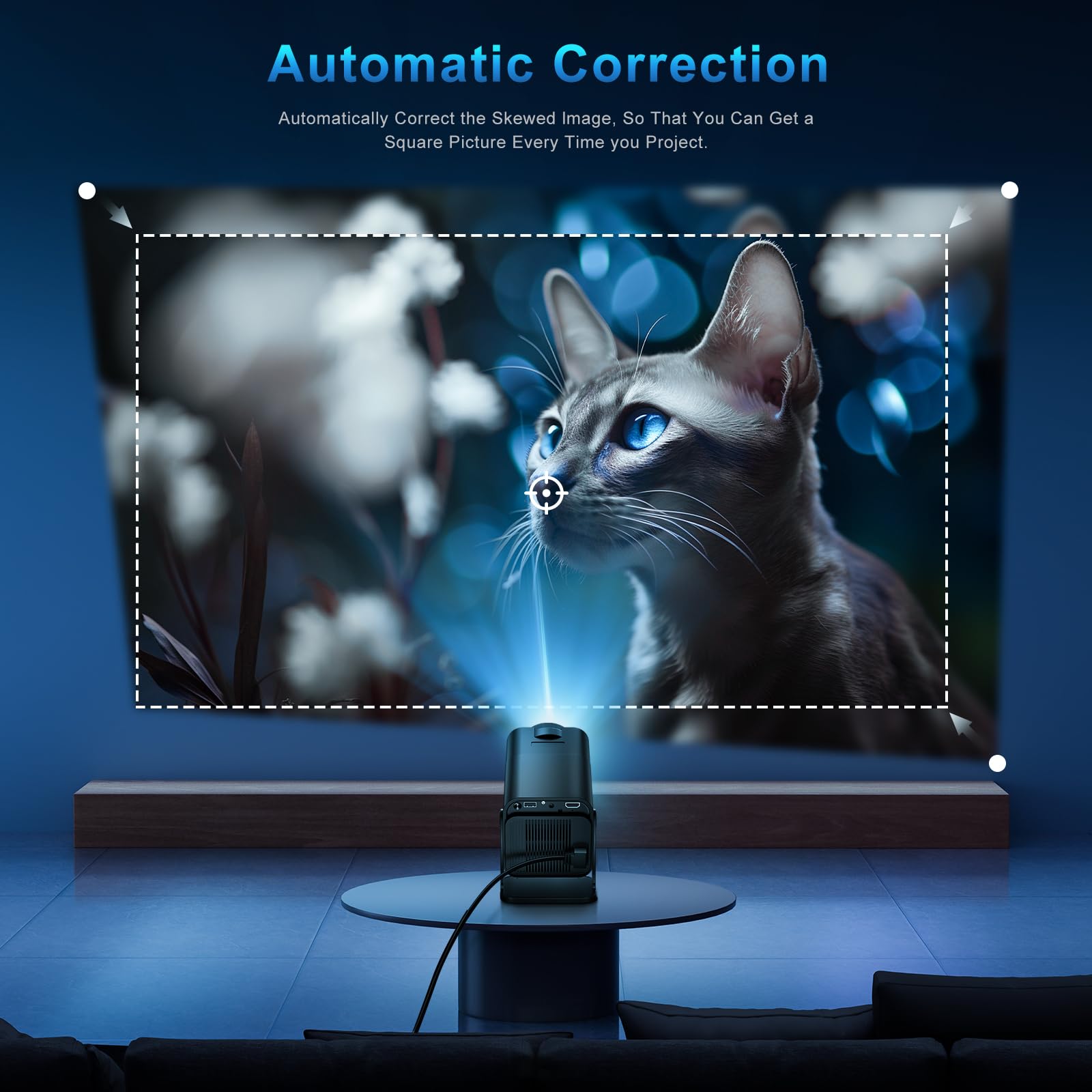 YEEFON Beamer, 4K FHD Mini Tragbarer Projektor, Unterstützt Android 11.0 5G WiFi 6 BT 5.0, Automatische Trapezkorrektur, 150 Zoll, 360-Grad-Flip Smart Beamer, für Phone/PC/Laptop/TV