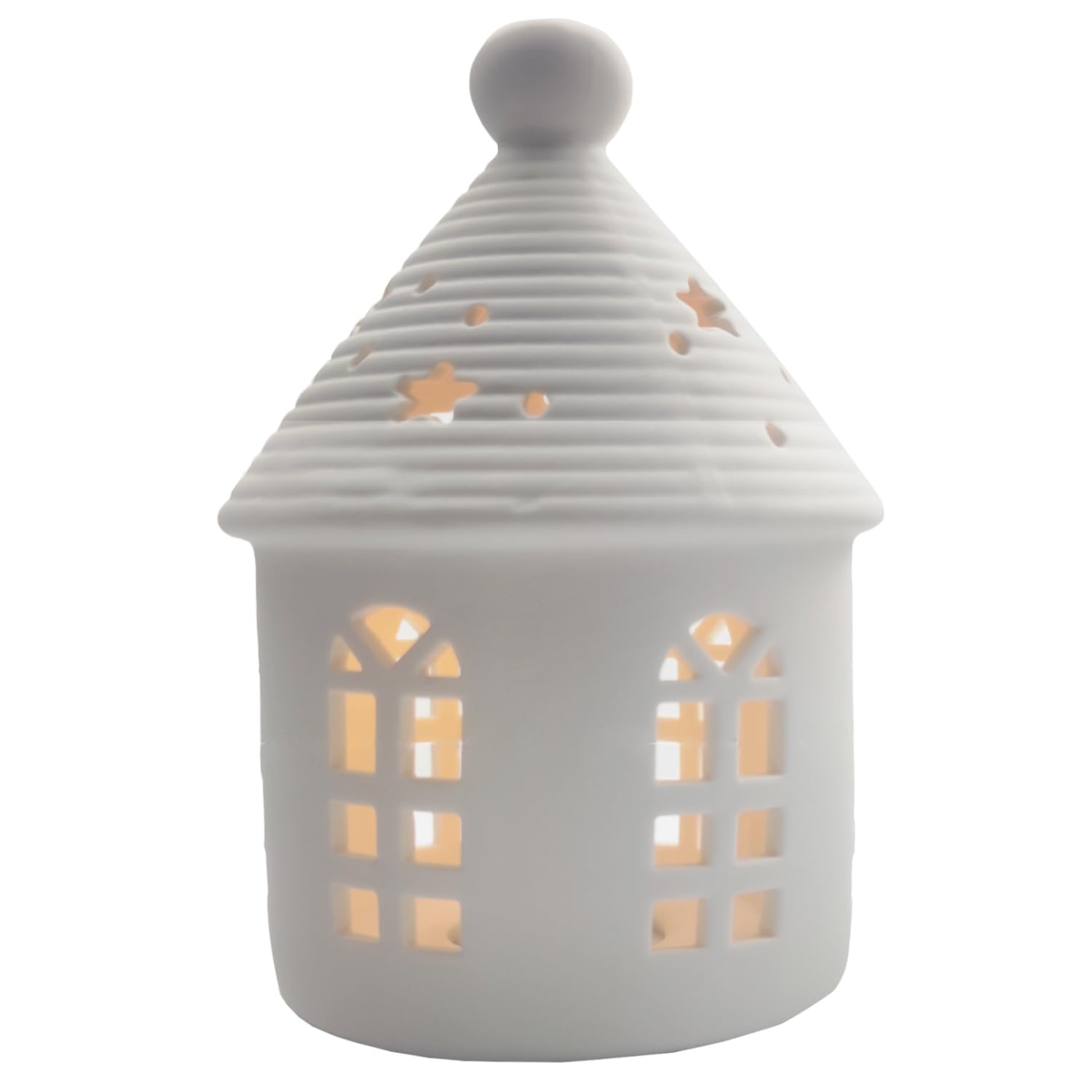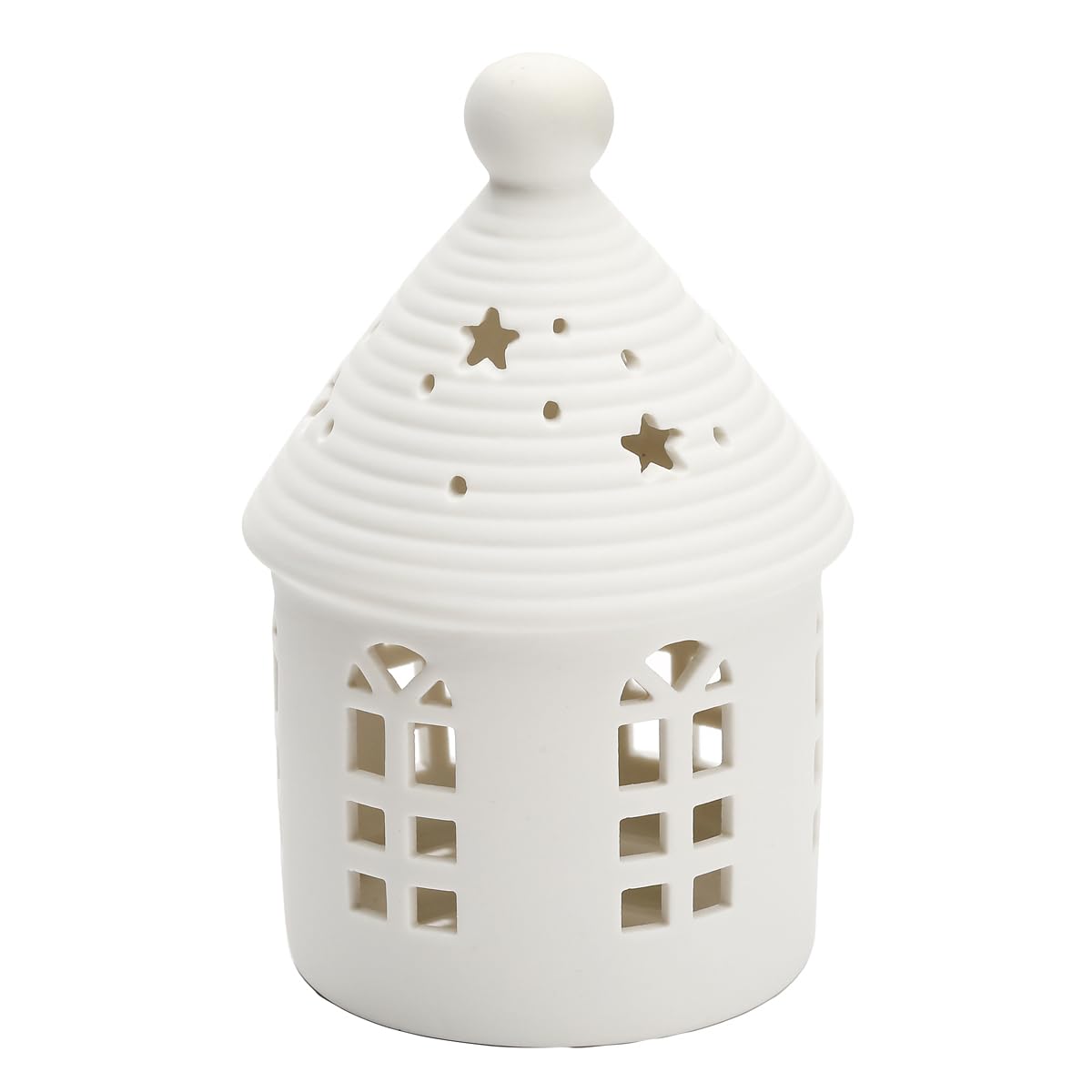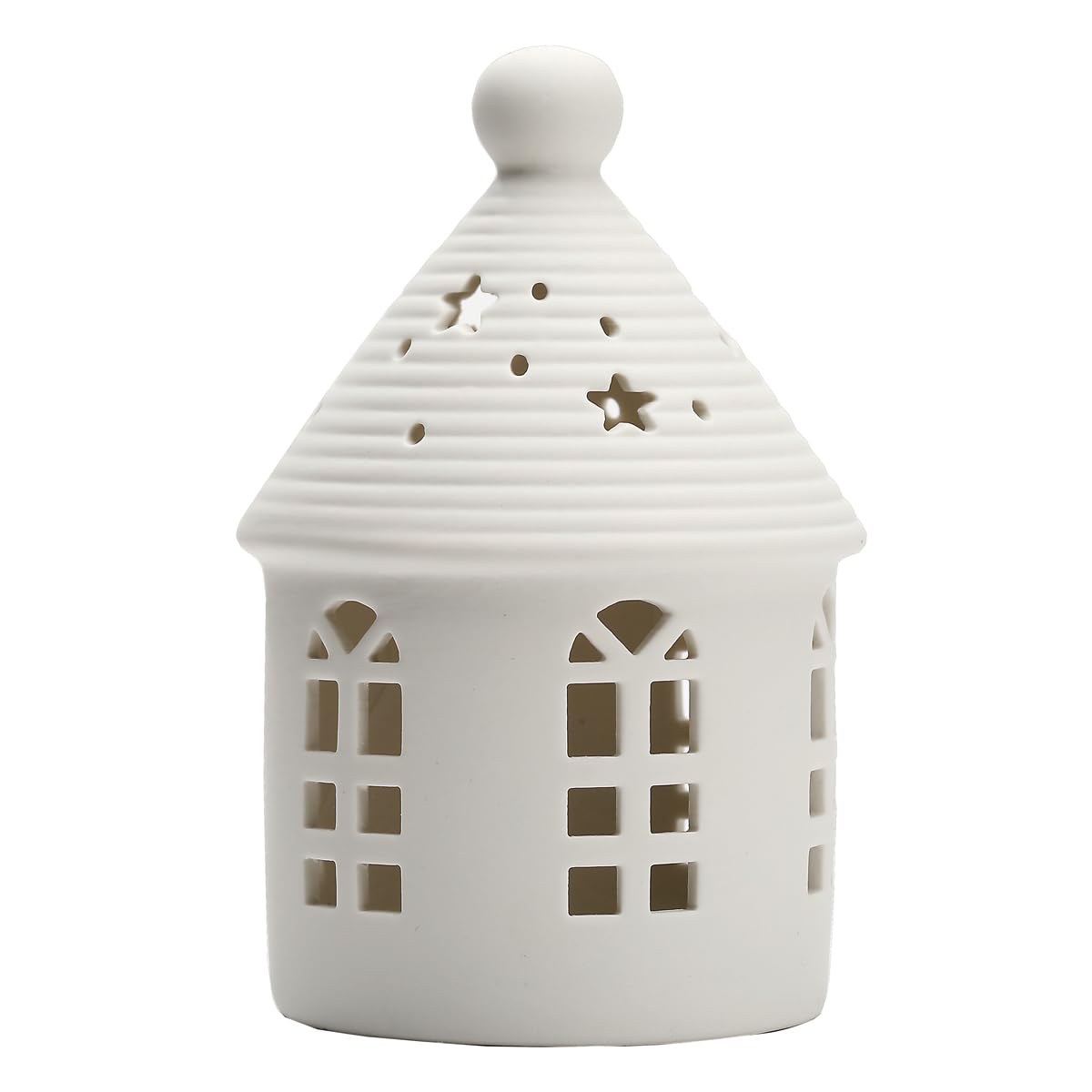 Yeerockal Keramic Xmas Dekohaus mit LED Leuchtmittel | 14cm Höhe | LED 2 x LR44 Batterien Inkl | Weiss Teelichthalter Xmas DIY Dekoration (Style A)