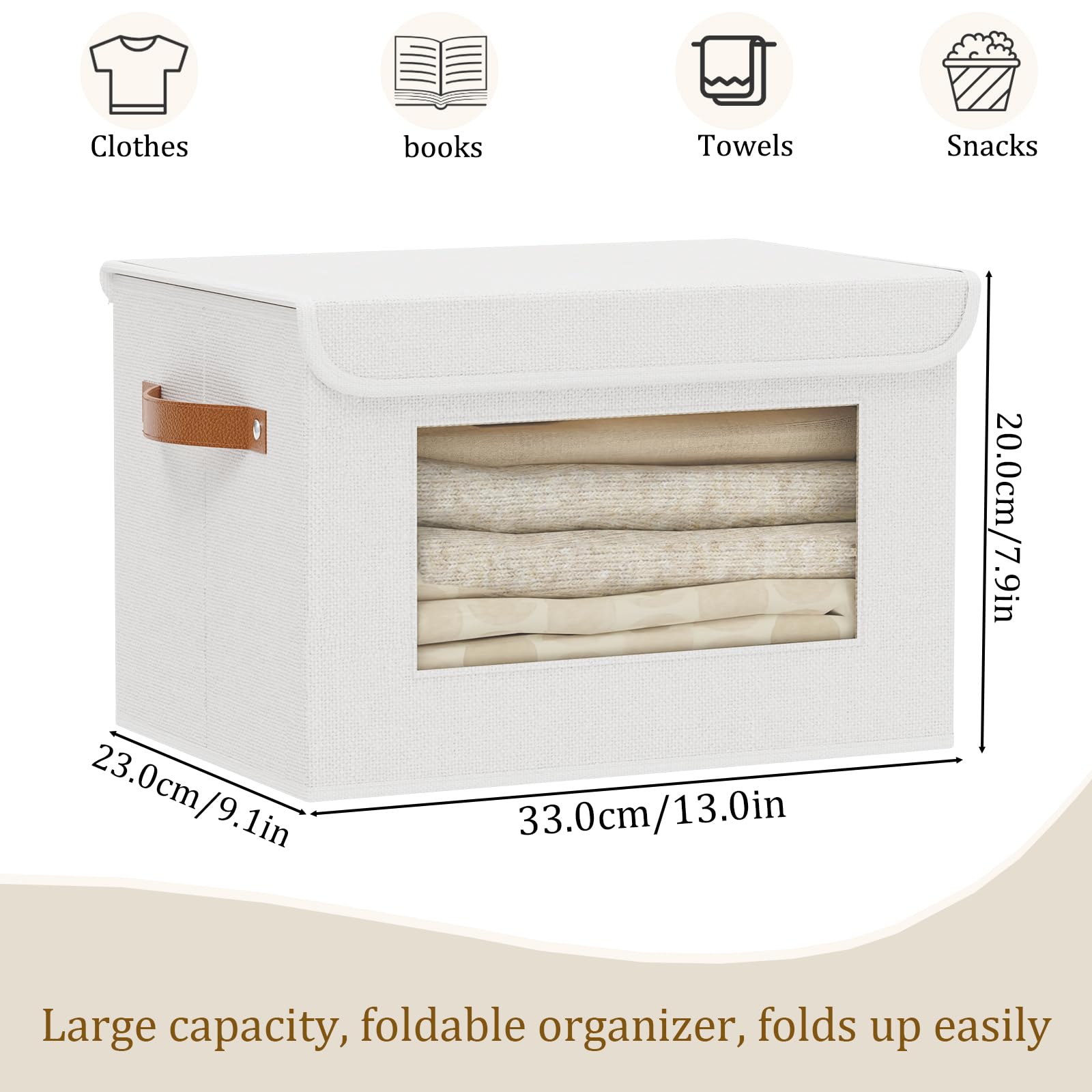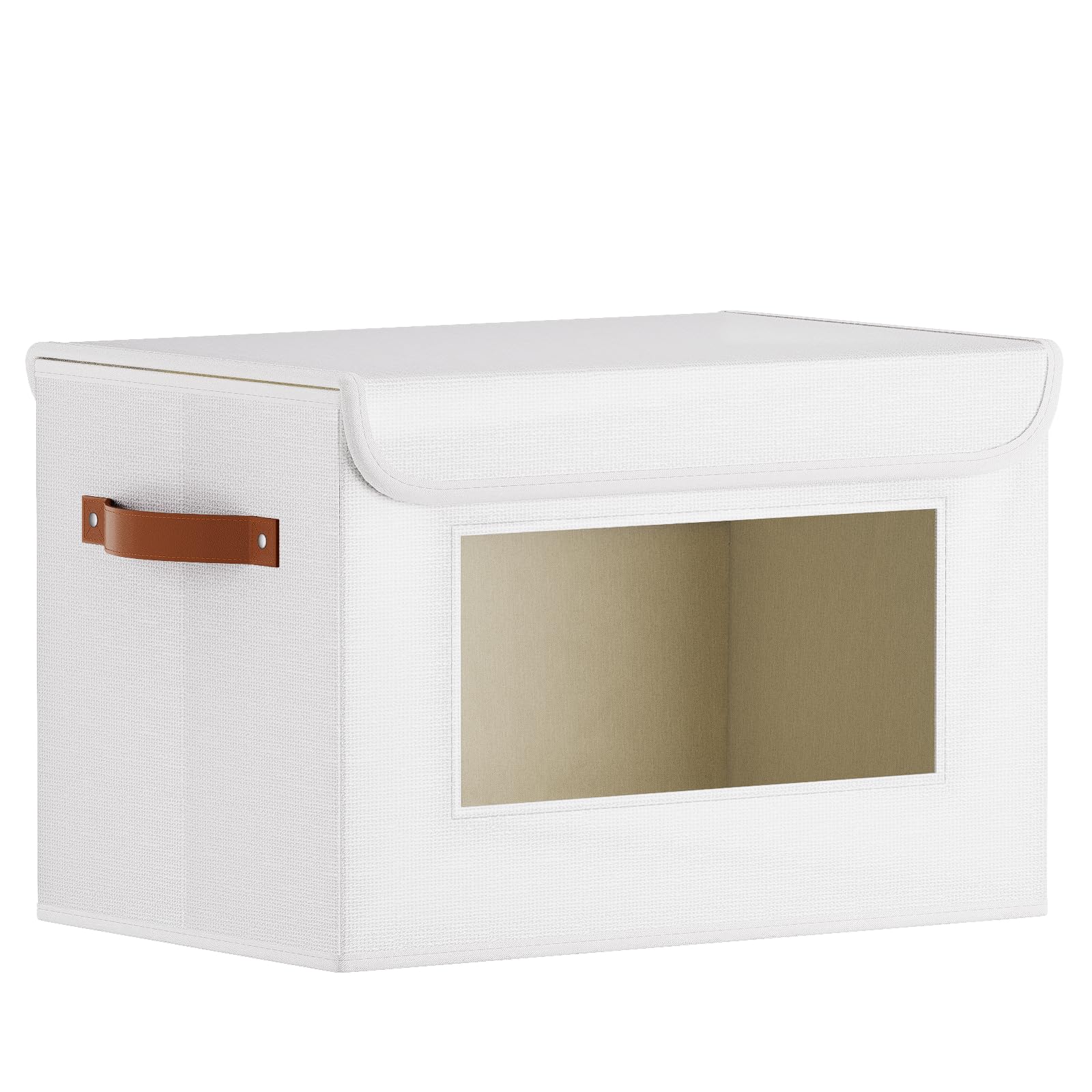 YheenLf 1 StüCk Aufbewahrungsboxen Stoff, Faltbare Aufbewahrungsbox, Boxen mit Deckel Aufbewahrung, Ordnungsboxen, Schrank Organizer mit Fenster, Weiss, 33x23x20cm