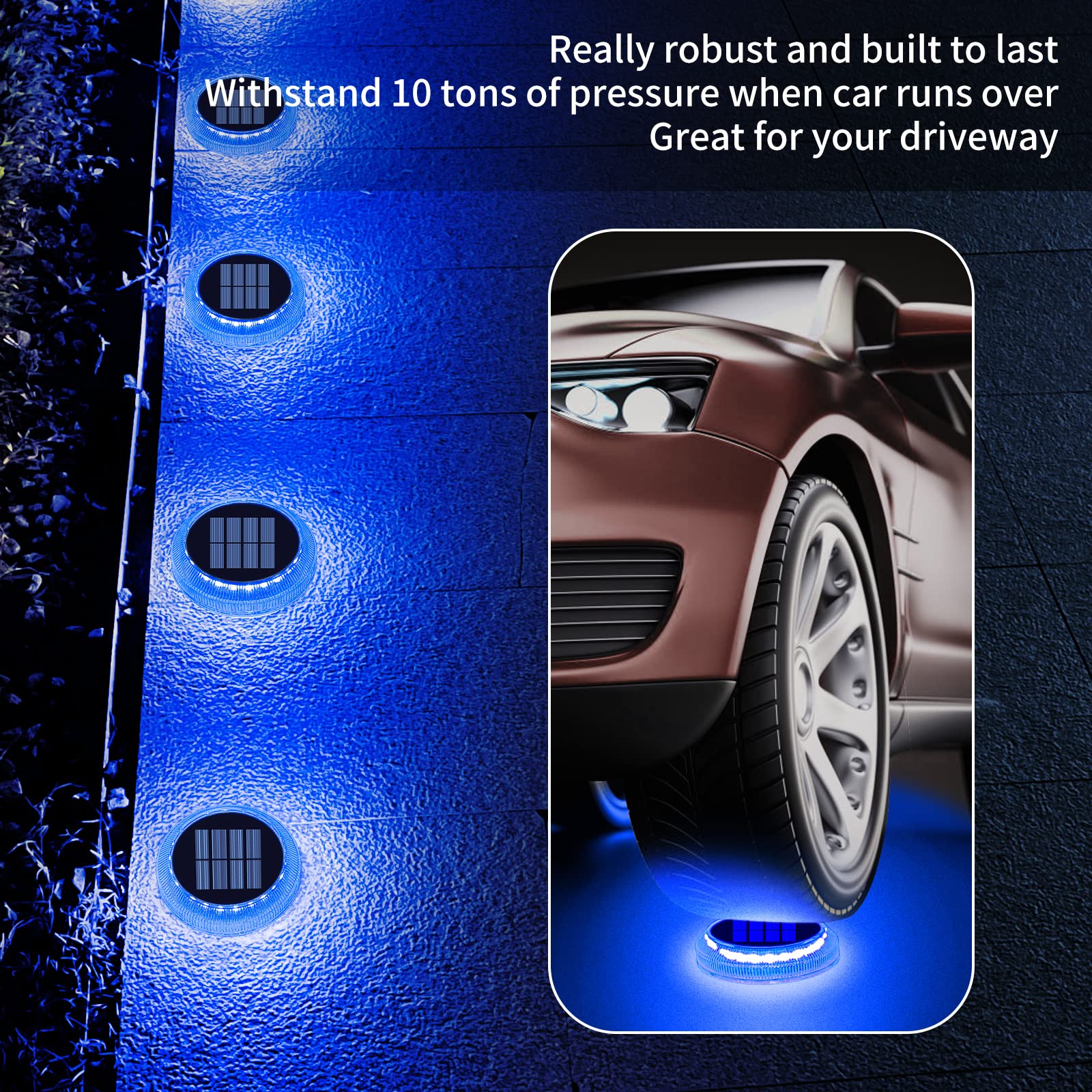 - 【Wasserdicht und druckbeständig】Die Solar Bodenleuchten Aussen besteht aus druckbeständigen Materialien und nimmt Ultraschallschweisstechnologie an. Sie ist wirklich IP68 wasserdicht und kann 10 Tonnen standhalten. Sie kann als Garagenstrassenlampe verwendet werden.