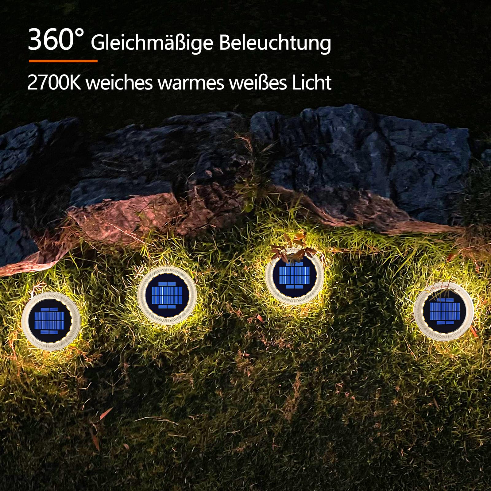 - 【Hellere und längere Beleuchtungszeit】Unsere solarlampen für aussen hat 22-hochwertige ultrahelle LED-Perlen eingebaut, bietet eine stabile und helle Lichtquelle bei 360°, und ist mit einer 1000mAh Batterie mit grosser Kapazität ausgestattet; Durch Tests kann unsere Solarlampe für 16-Stunden kontinuierlich beleuchtet werden, nachdem sie 4-6 Stunden lang in ausreichendem Sonnenlicht aufgeladen wurde.