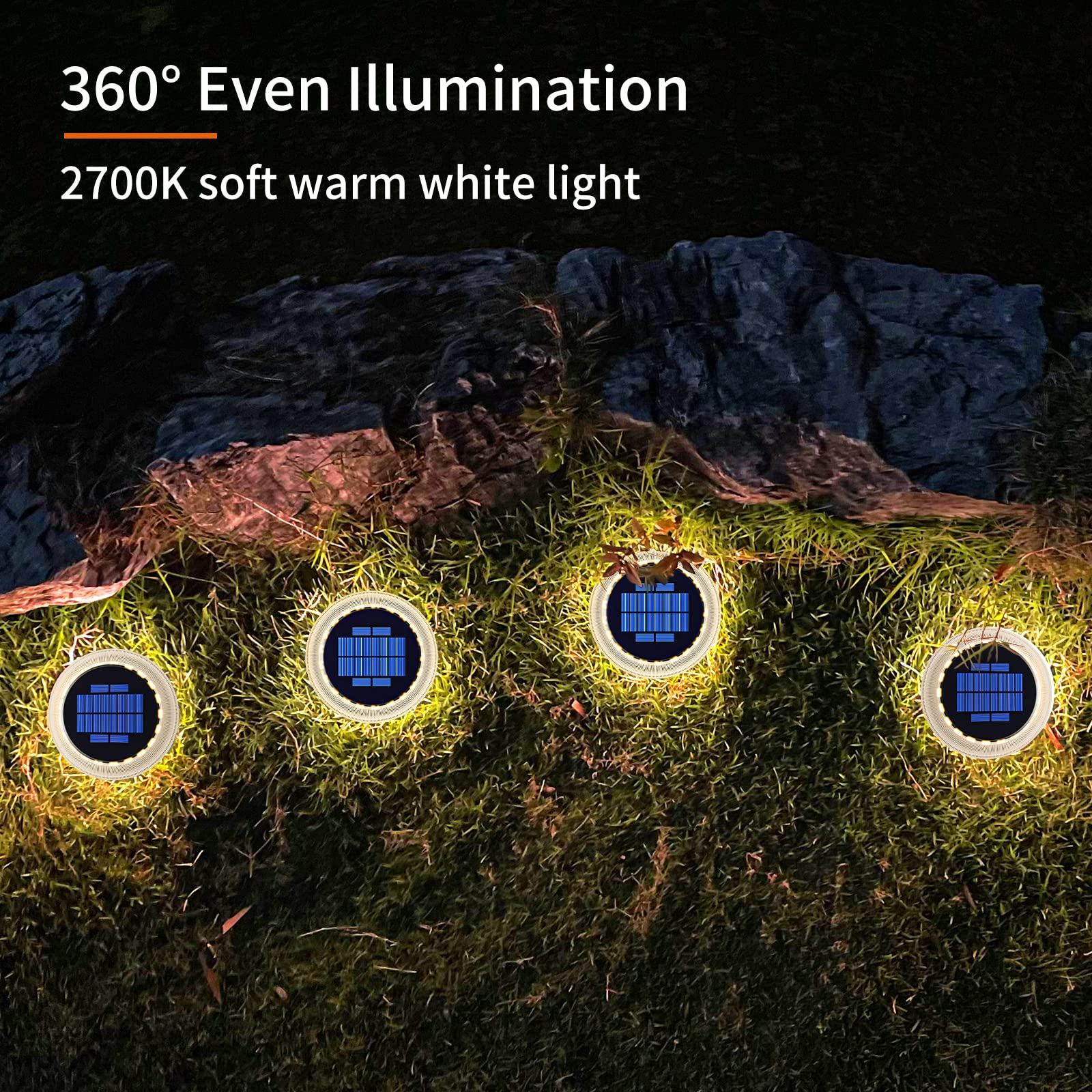 YiLaie Solarleuchten für Aussen, Solarlampen für garten 360° LED Solar Treppe Licht IP68 Wasserdicht mit Auto On/Off Bodenleuchten, Warmes Weiss 2700K, 4 Stück