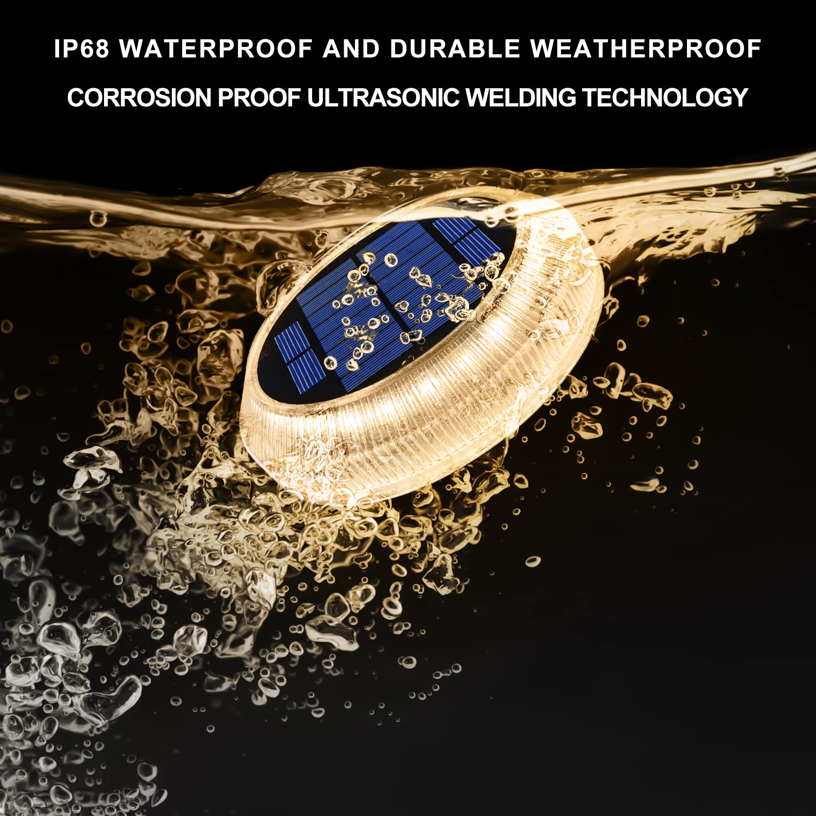 - 【Wasserdicht und druckbeständig】Die solarlampen für aussen garten besteht aus druckbeständigen Materialien und nimmt Ultraschallschweisstechnologie an. Sie ist wirklich IP68 wasserdicht und kann 10 Tonnen standhalten. Sie kann als Garagenstrassenlampe verwendet werden.