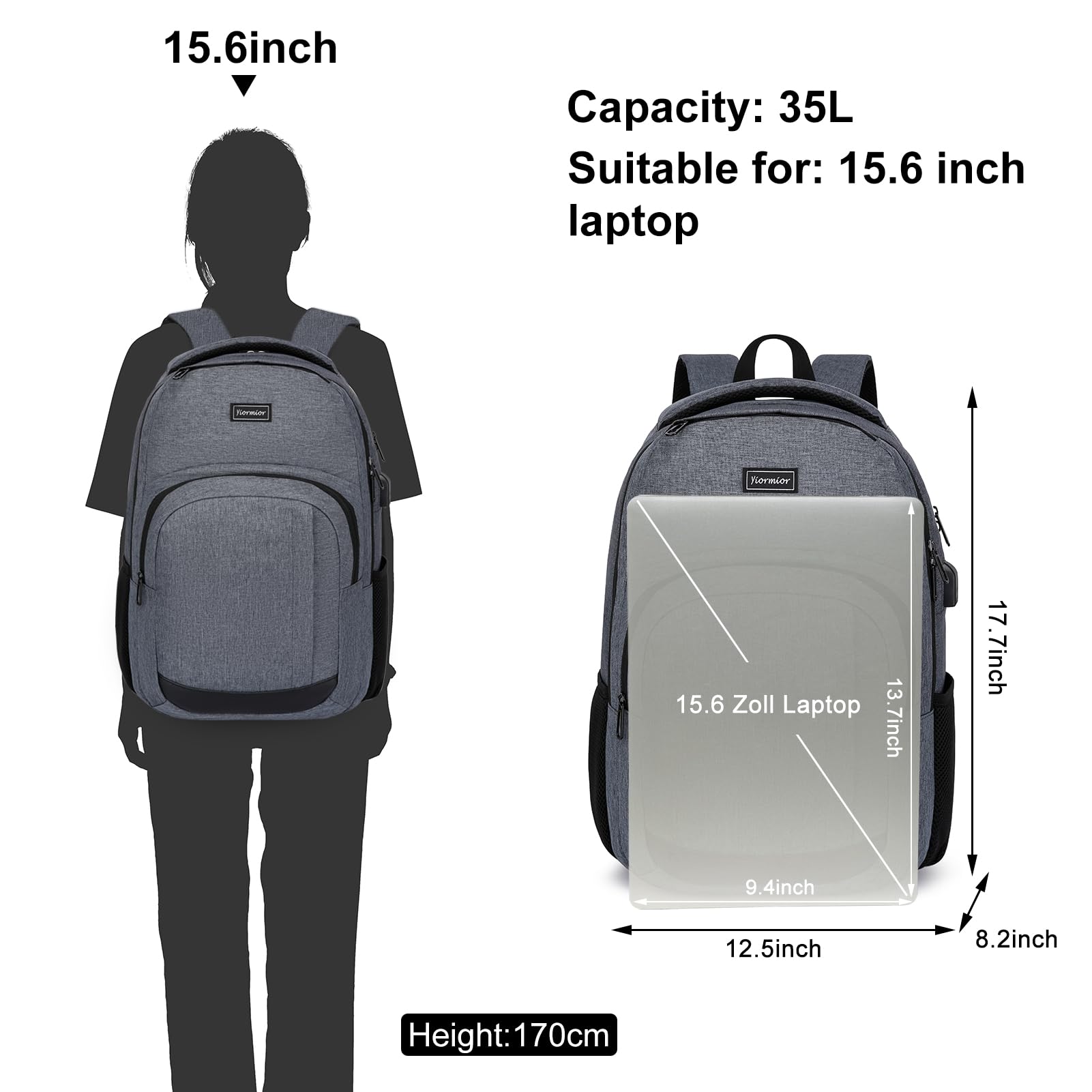 YIORMIOR Schulrucksack Jungen Mädchen Teenager, Rucksack Schule Laptop Rucksack für Herren Damen Daypacks für 15.6 Zoll Laptop Business Rucksack mit USB Ladeanschluss 35L