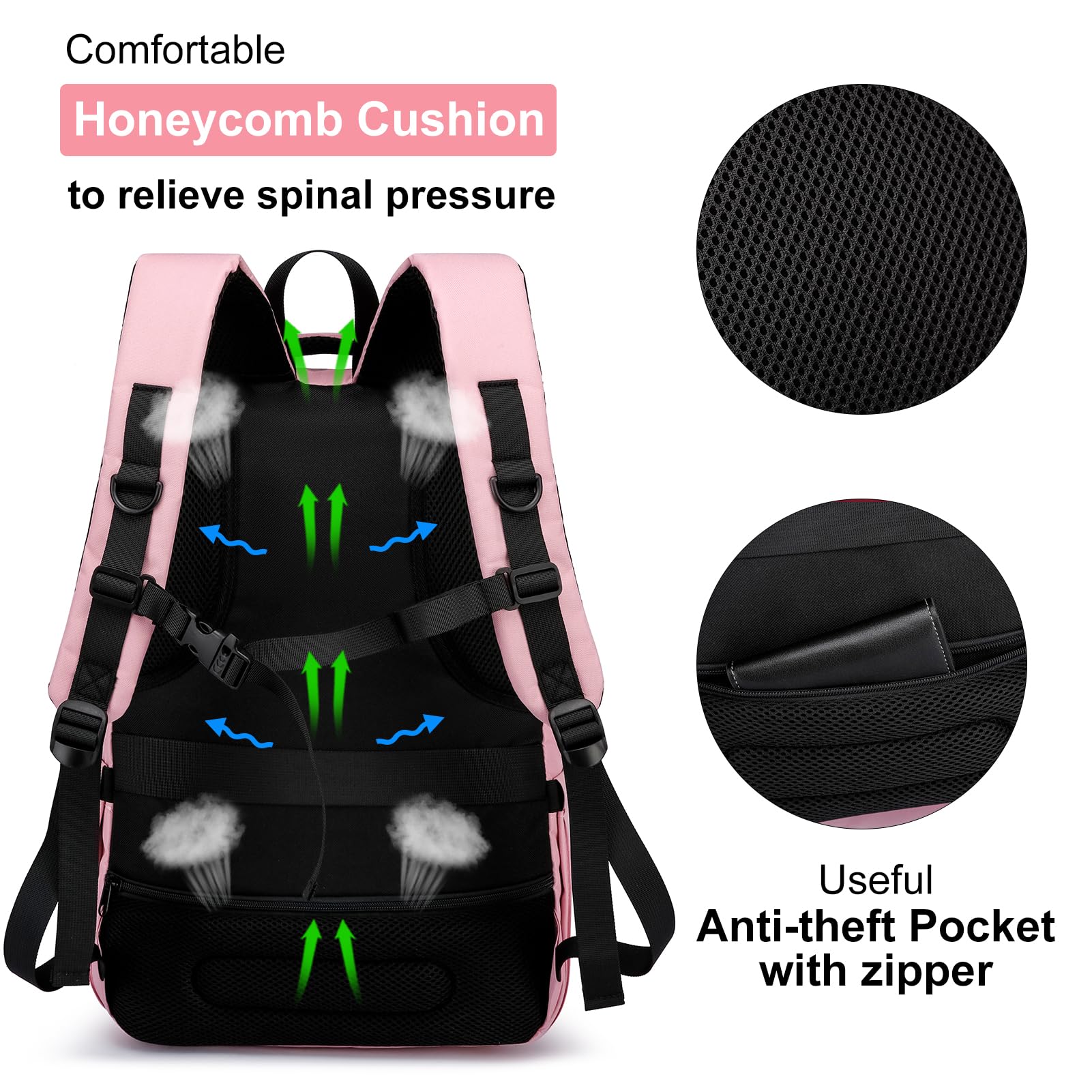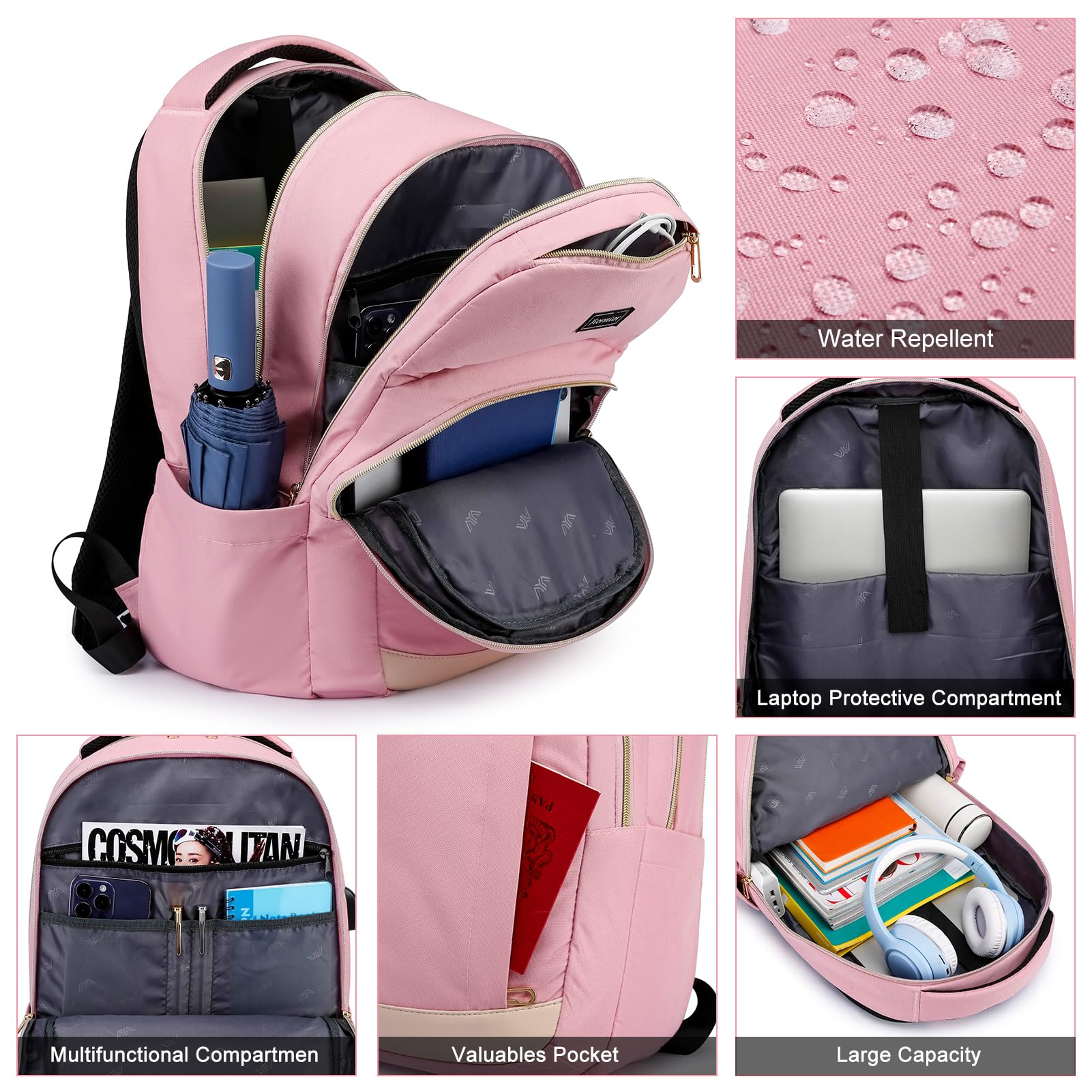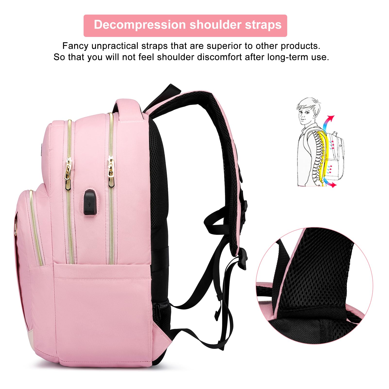 YIORMIOR Schulrucksack Mädchen Teenager, Rucksack Damen Schule Daypacks für 15.6 Zoll Laptop Rucksack mit USB Ladeanschluss 35L