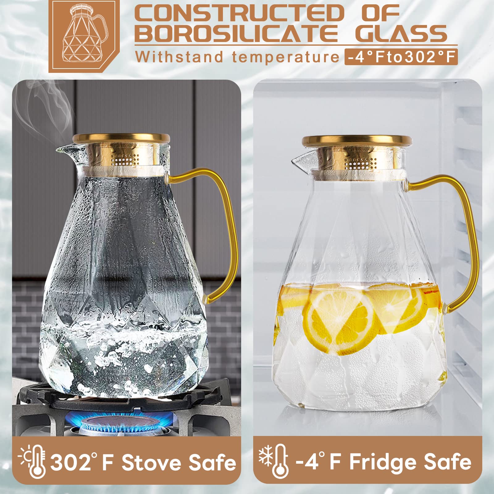 Yirilan 2.2 Liter 74 Unzen Karaffe,Glaskaraffe, Wasserkaraffe mit Deckel, Glaskanne, Wasserkaraffe mit Deckel, Wasserkrug, Glaskrug, Wasser Karaffen