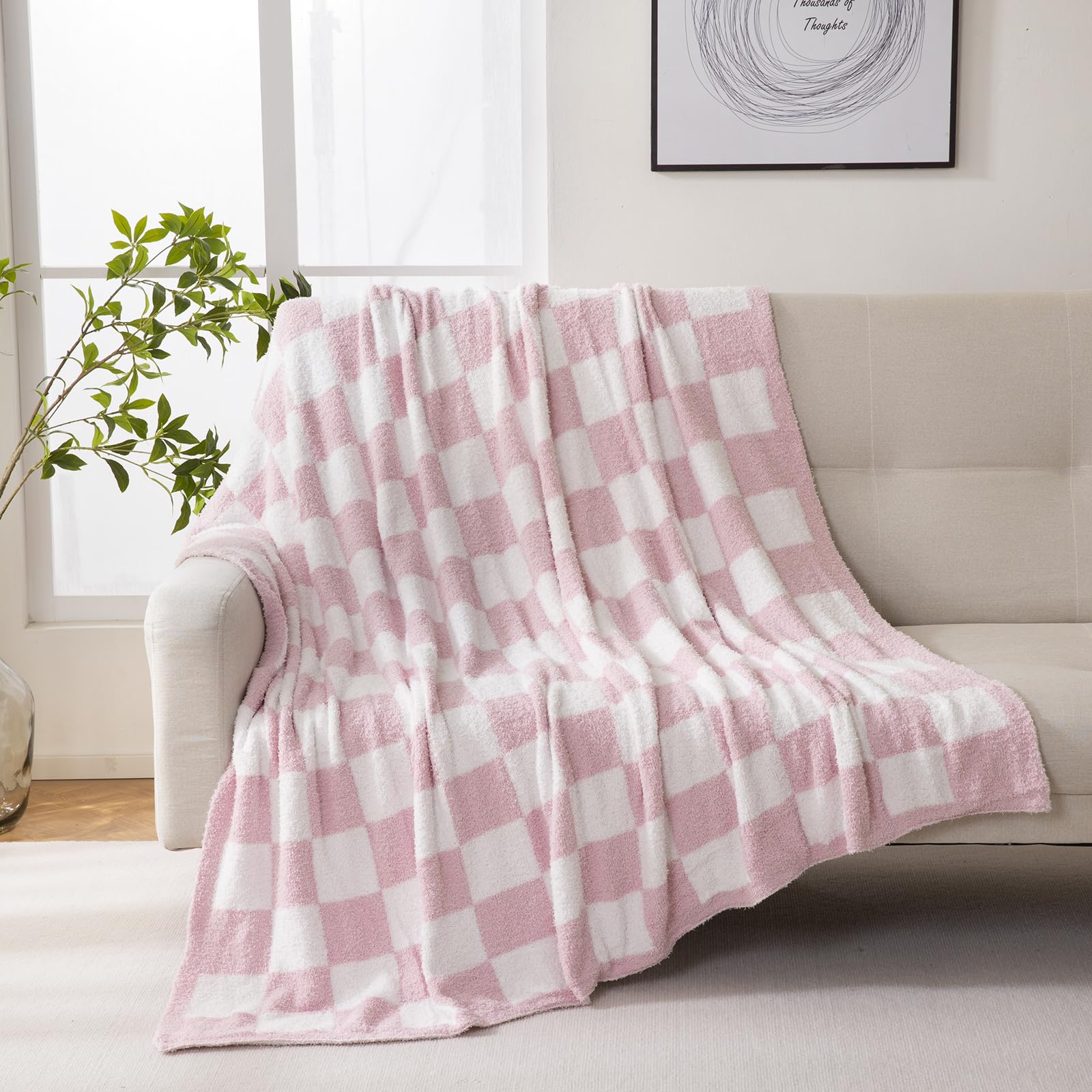 YIRUIO Überwurfdecken, Schachbrett, kariert, wärmer, bequem, Plüsch, wendbar, Mikrofaser, gemütlich, Dekoration für Zuhause, Bett, Couch (Rosa, 152,4 x 200,3 cm)