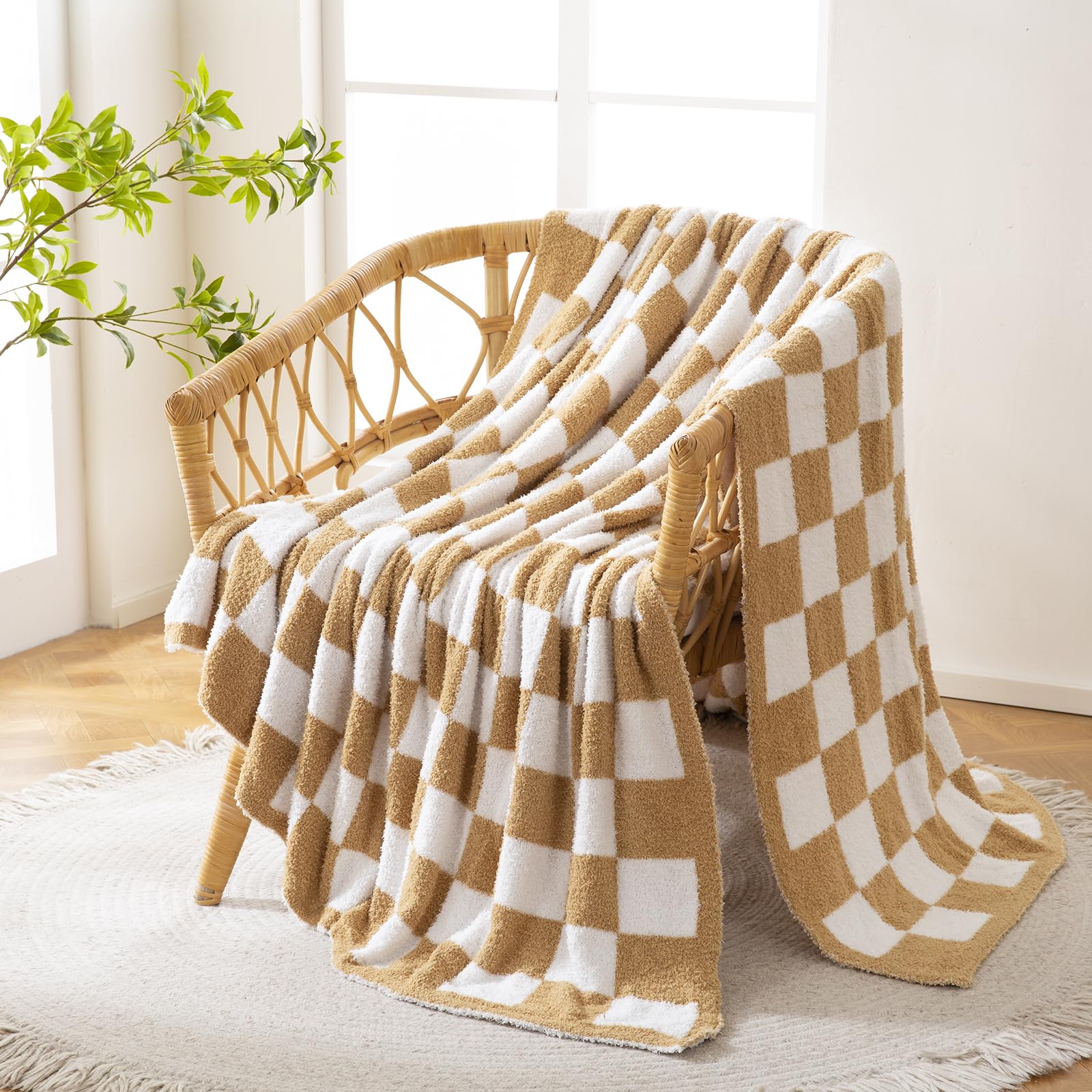 YIRUIO Überwurfdecken, Schachbrett, Gitter, Schachbrett, Gingham-Wärmer, bequem, wendbar, Mikrofaser, gemütliche Dekoration für Zuhause, Bett, Couch (gebranntes Orange, 130 x 160 cm)