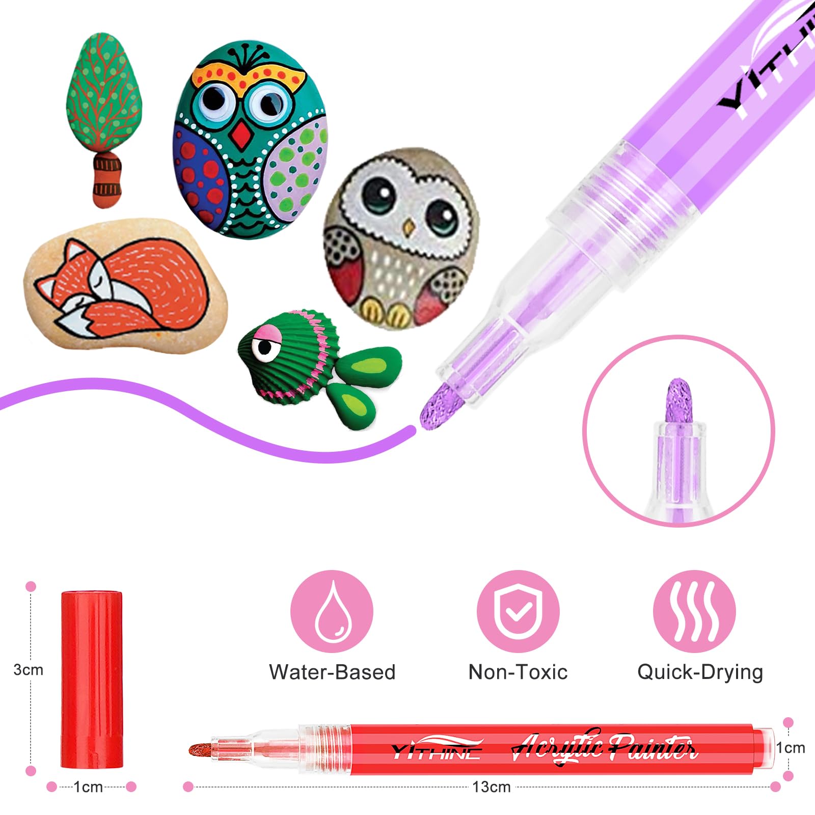YITHINC Acrylstifte für Steine wasserfest, Steine Bemalen Stifte, Permanent Acrylmarker für Glas, Leinwand, Metall, HolzLeinwand, Porzellan, Keramik, Metall, Kunststoff (28 feine Spitze)