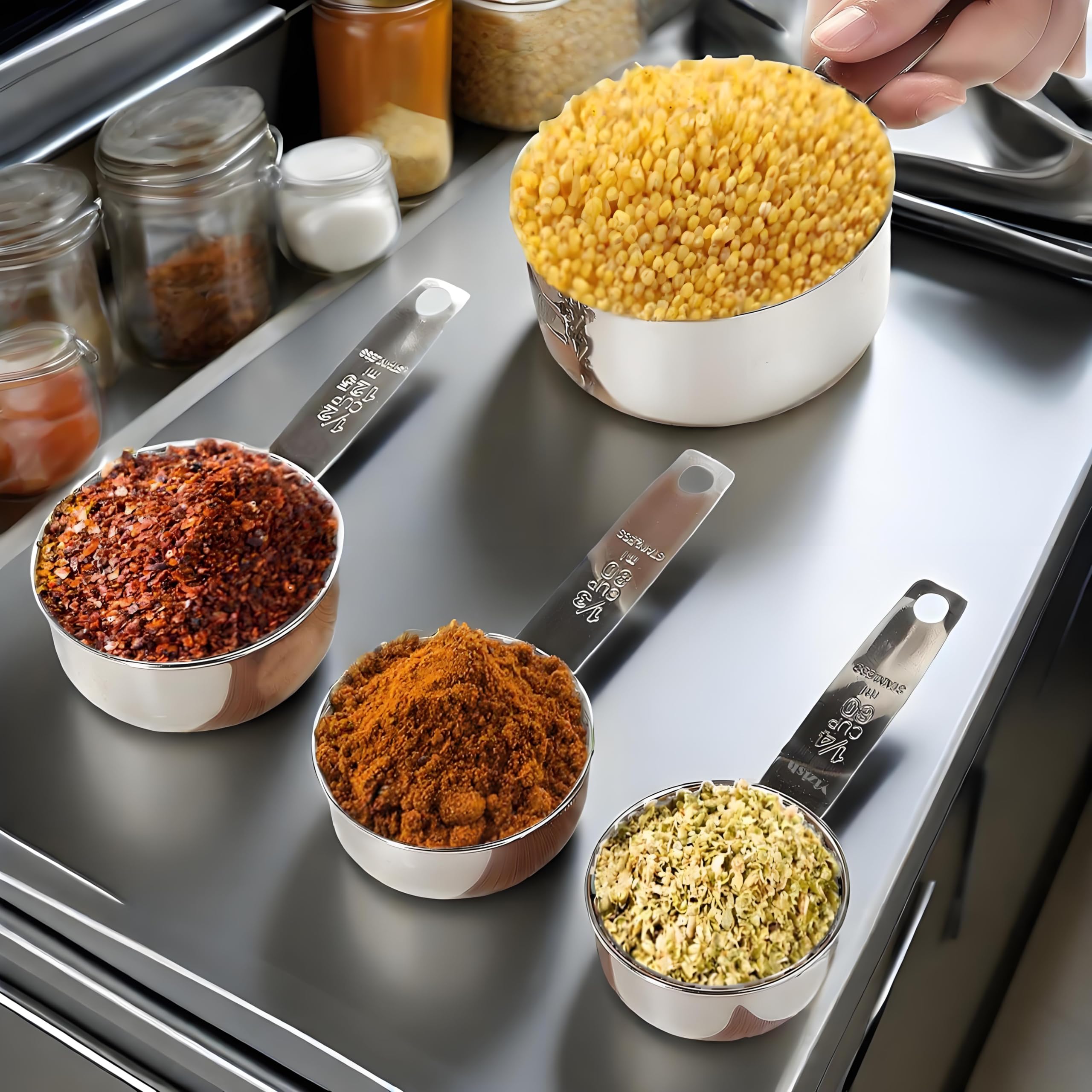 Um ein Gericht zubereiten zu können, müssen Sie die Richtung und die richtige Messung befolgen. Das richtige Messen ist ein wesentlicher Bestandteil des erfolgreichen Backens und Kochens. Glücklicherweise ist das Kochen mit Yizish Edelstahl Messwerkzeugen schnell und gibt Ihnen ein akkurates Mass für Rezepte ohne den Ärger.