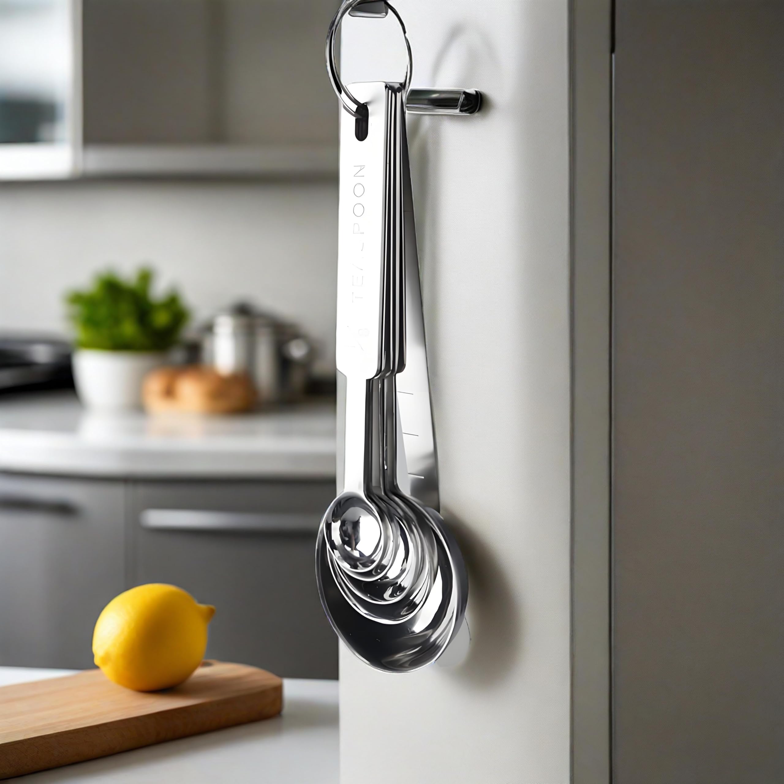 Mit fünf Edelstahl-Tassen (1/8, 1/4, 1/3, 1/2, 1 Tasse), fünf Löffel aus Edelstahl 304 (1/8, 1/4, 1/2, 1 TL, 1 EL) , ein Tiefenmesslineal, eine 1 EL (15ml) Kaffeeschaufel mit Clip, Metallnisterring und ein Massäquivalent, Sie haben immer die perfekte Möglichkeit, alles zu messen.