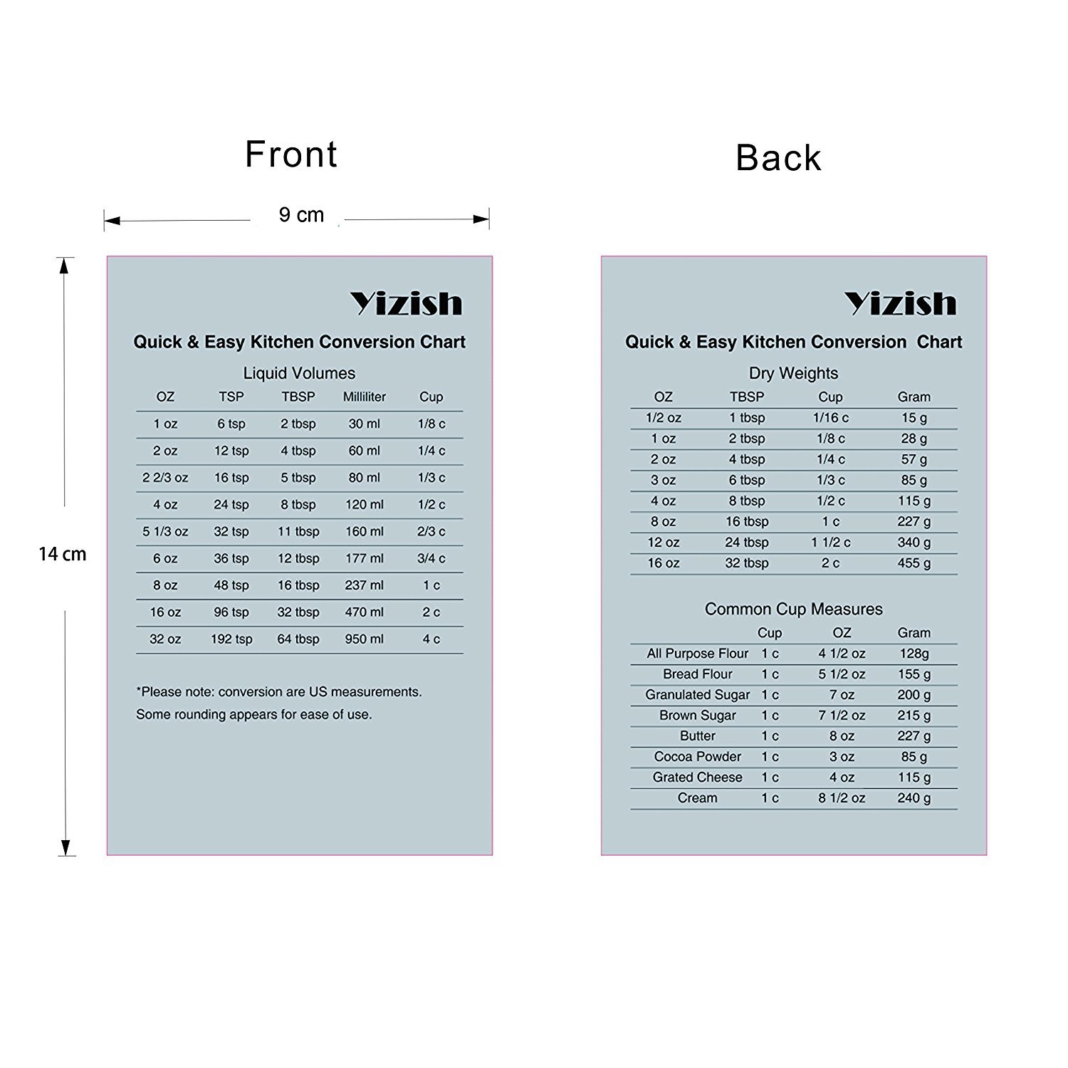 1 x Küchenmessumrechnungstabelle