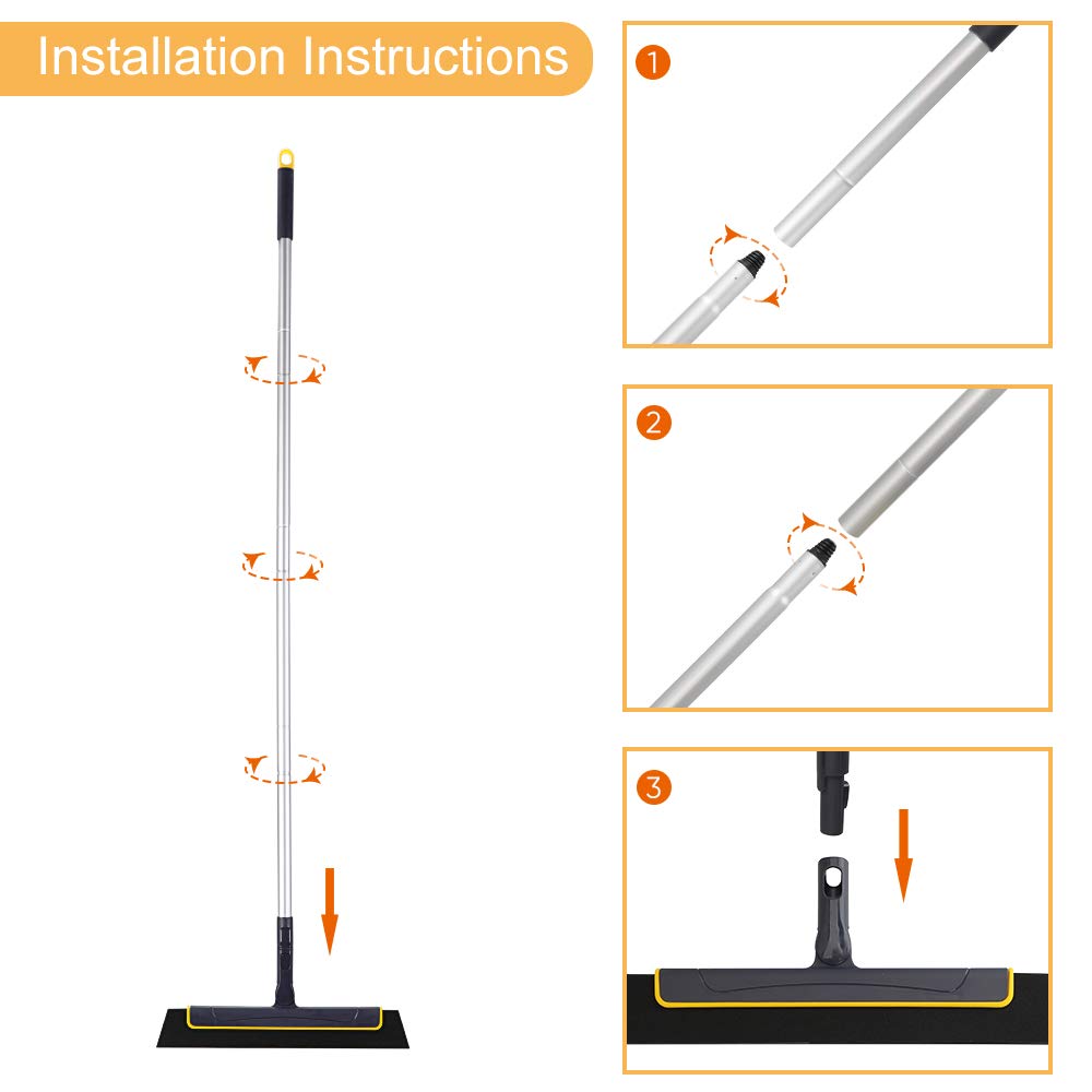 Yocada Bodenwischer Wasserabzieher 51in Besen Perfekt für Dusche Badezimmer Küche Home Fliesen Tierhaar Pelz Boden Marmor Glasfenster Wasserschaum Reinigung Lang verstellbar Abnehmbarer Griff